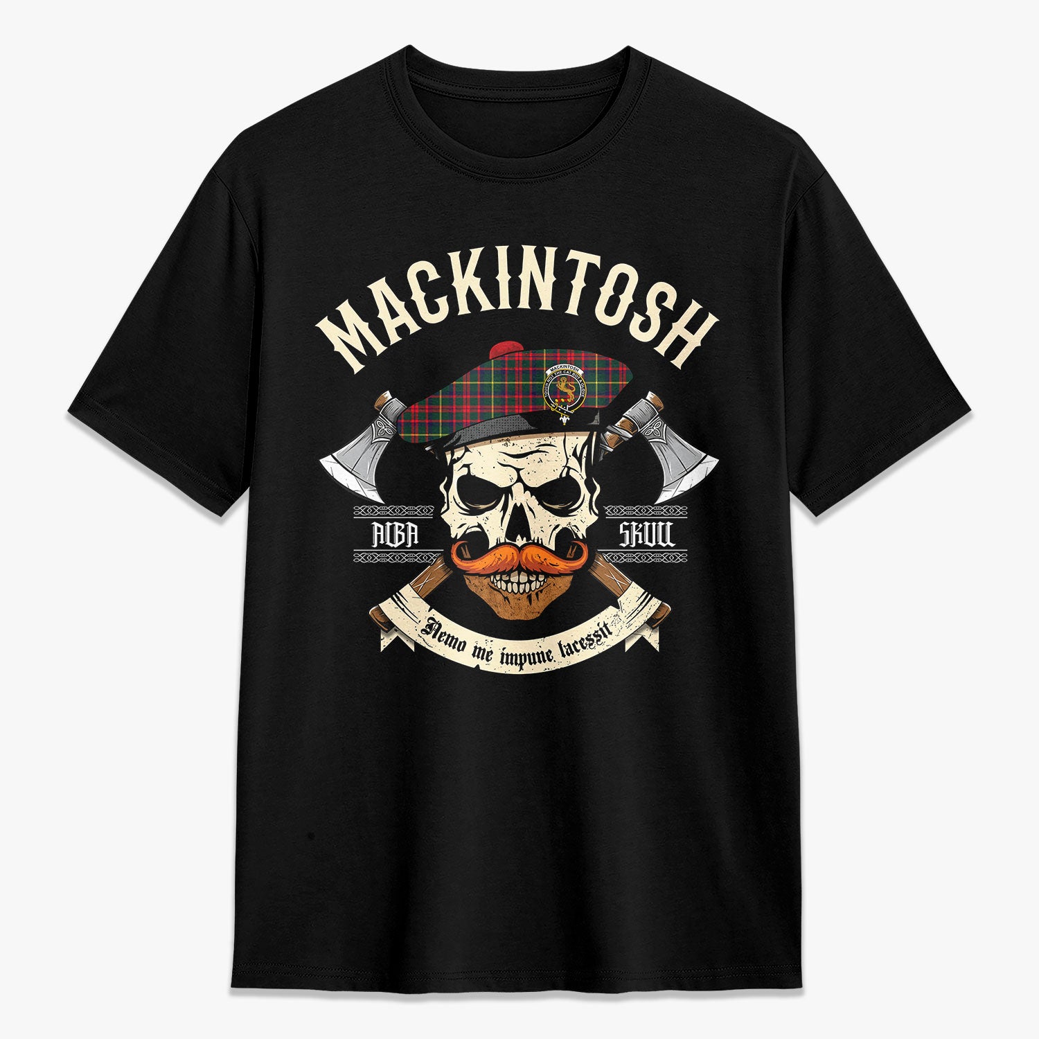 MacKintosh Hunting Modern Tartan Crest 2D T-shirt - Alba Skull Style