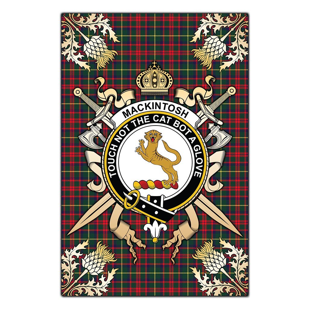 MacKintosh Hunting Modern Tartan Crest Black Garden Flag - Gold Thistle Style