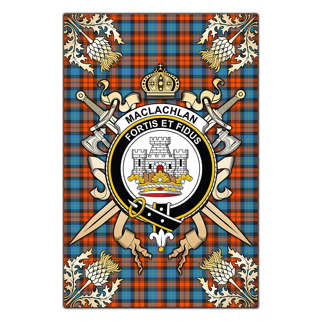 MacLachlan Ancient Tartan Crest Black Garden Flag - Gold Thistle Style