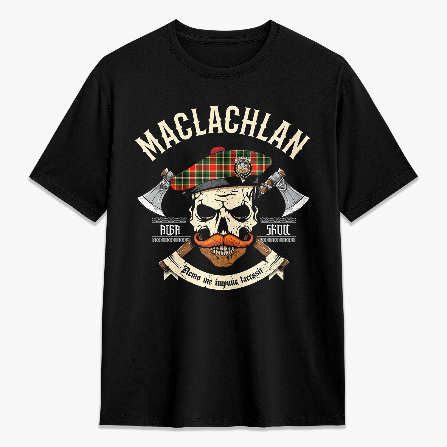 MacLachlan Hunting Modern Tartan Crest 2D T-shirt - Alba Skull Style,