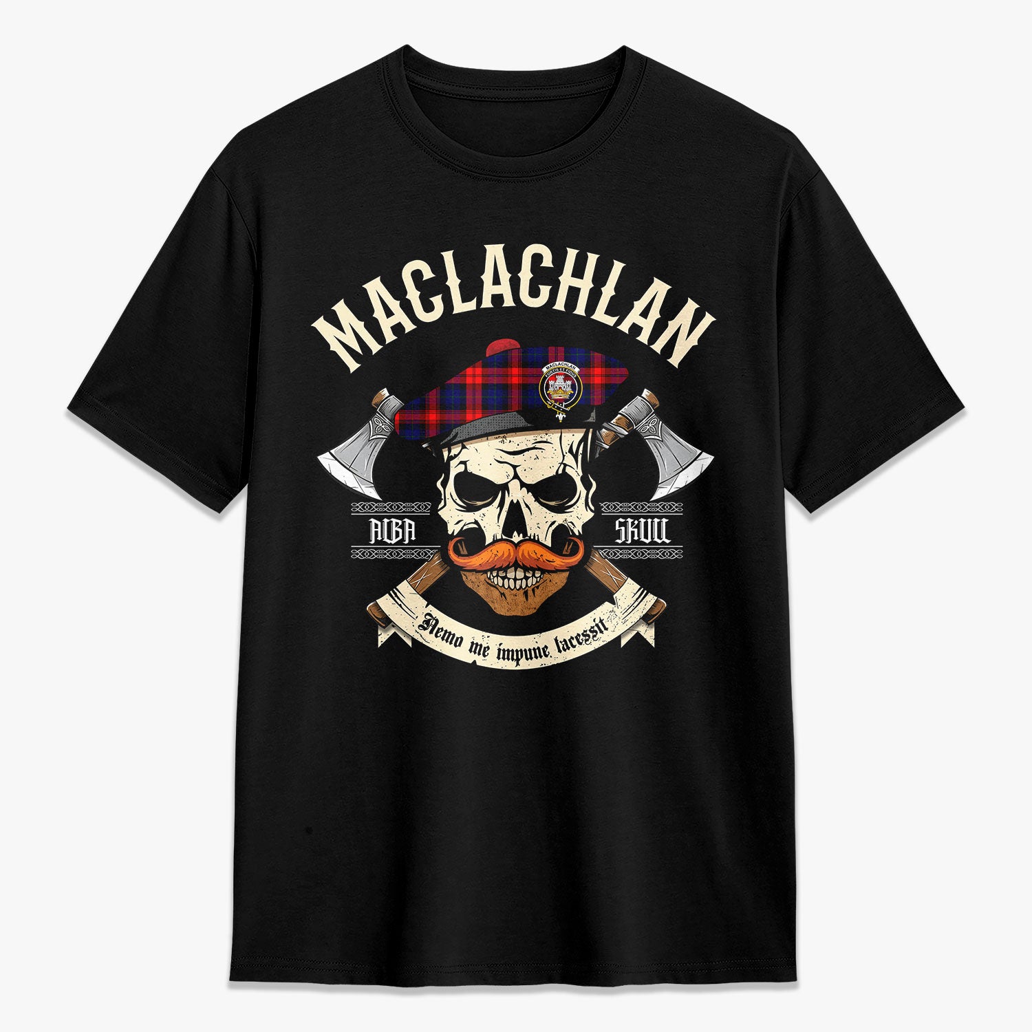 MacLachlan Modern Tartan Crest 2D T-shirt - Alba Skull Style,