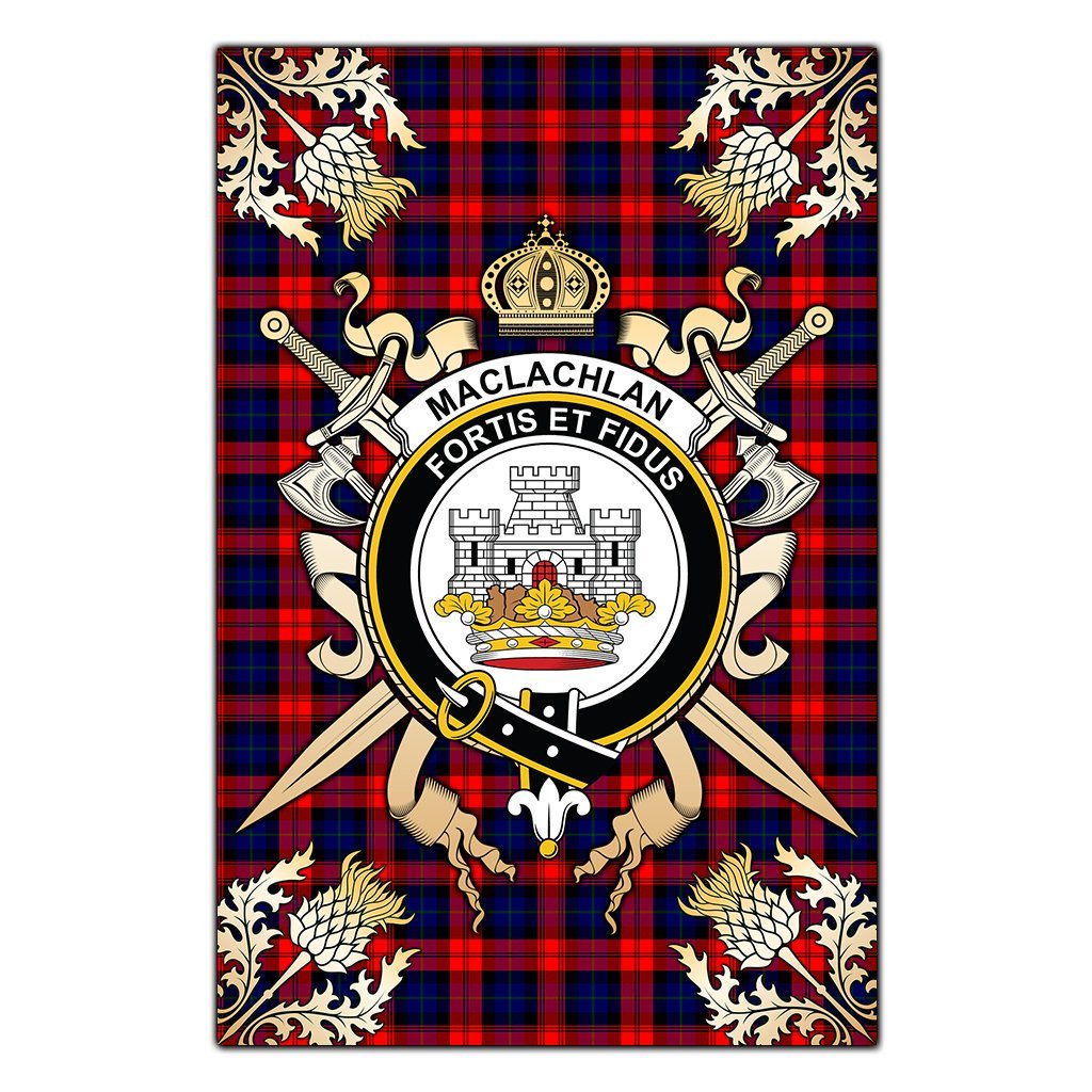 MacLachlan Modern Tartan Crest Black Garden Flag - Gold Thistle Style