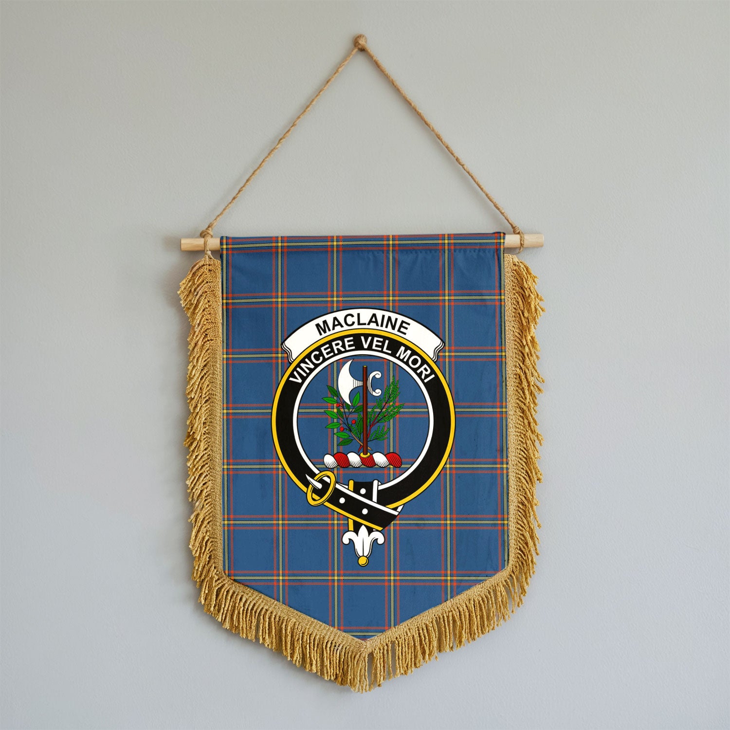 MacLaine of Loch Buie Hunting Ancient Tartan Crest Wall Hanging Banner - Wood Pole