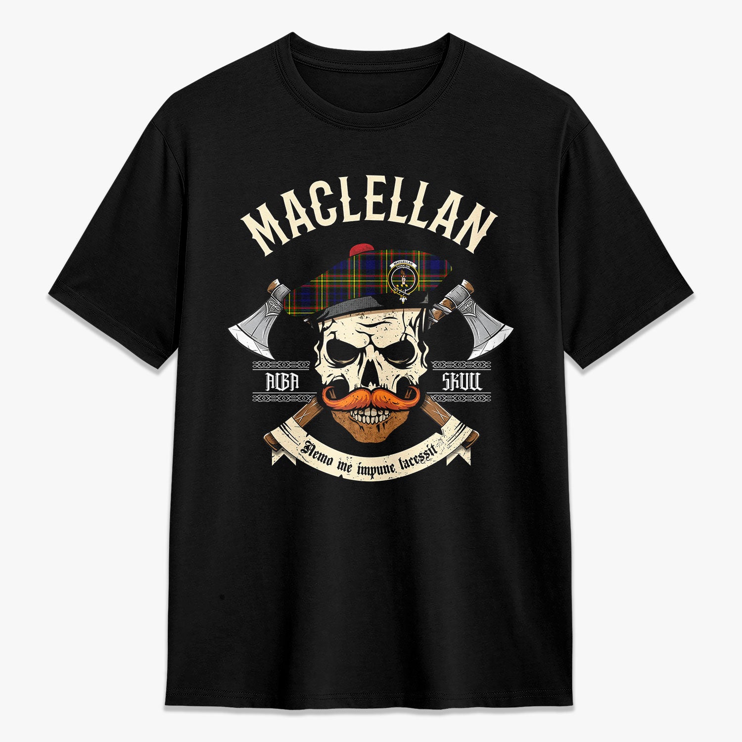 MacLellan Modern Tartan Crest 2D T-shirt - Alba Skull Style,