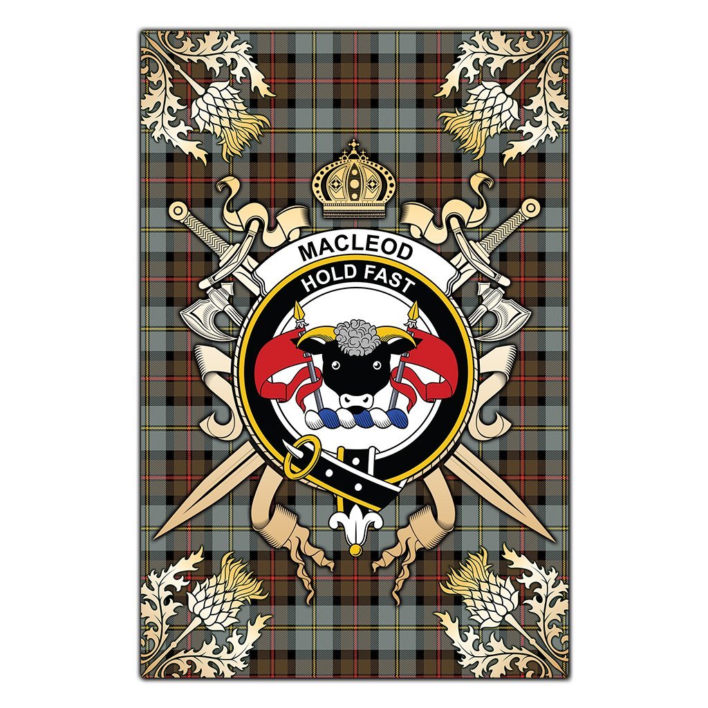 MacLeod of Harris Weathered Tartan Crest Black Garden Flag - Gold Thistle Style