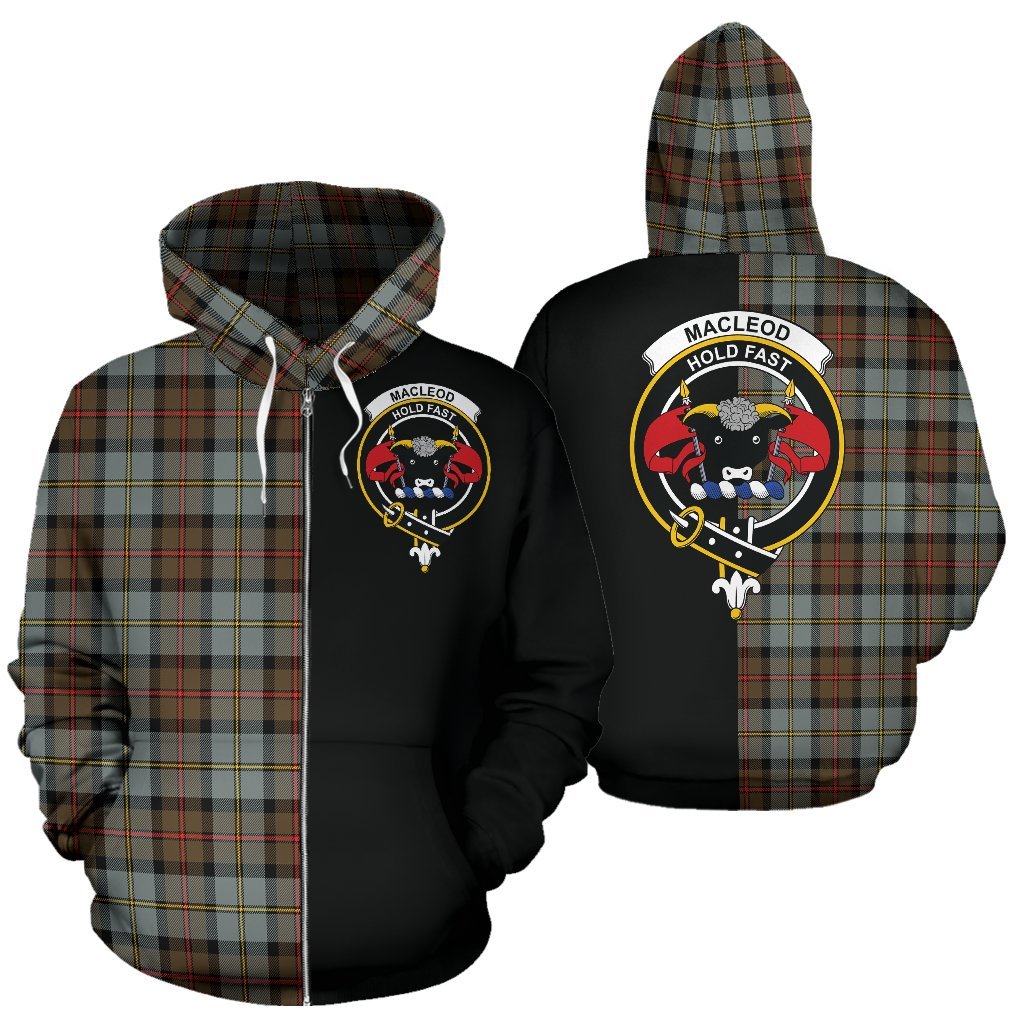 MacLeod of Harris Weathered Tartan Crest Zipper Hoodie - Half Of Me Style