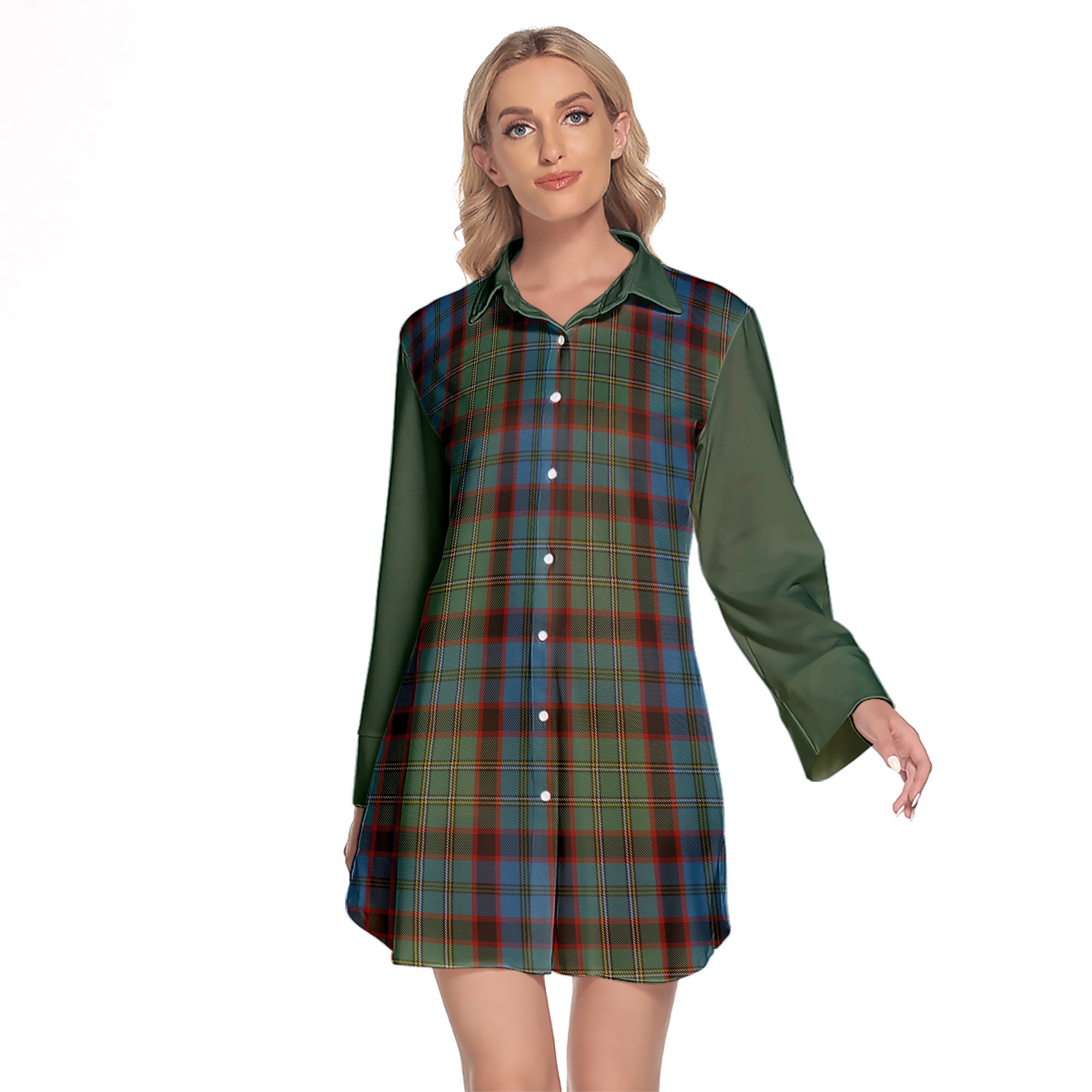 MacNicol Hunting Tartan Women's Lapel Shirt Dress With Long Sleeve