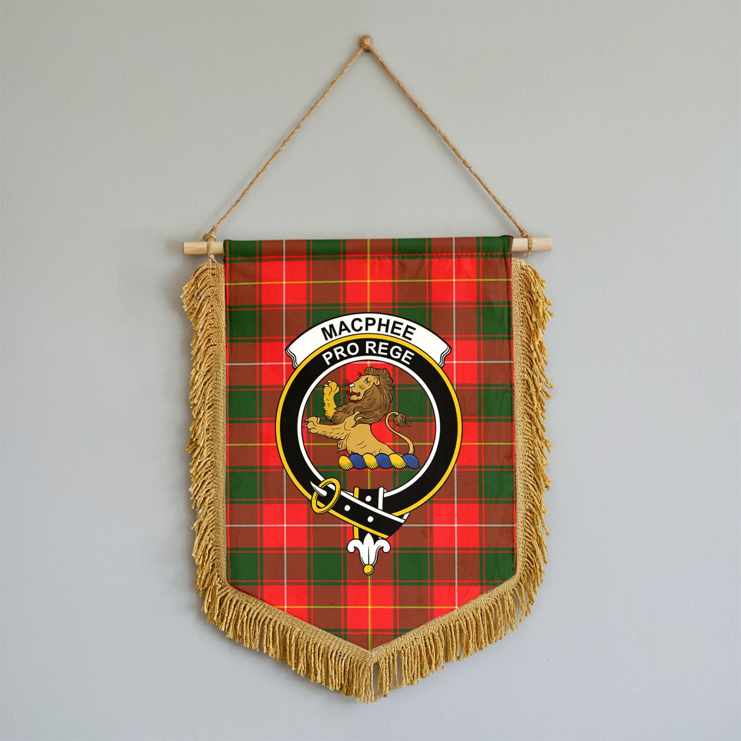 MacPhee Modern Tartan Crest Wall Hanging Banner - Wood Pole