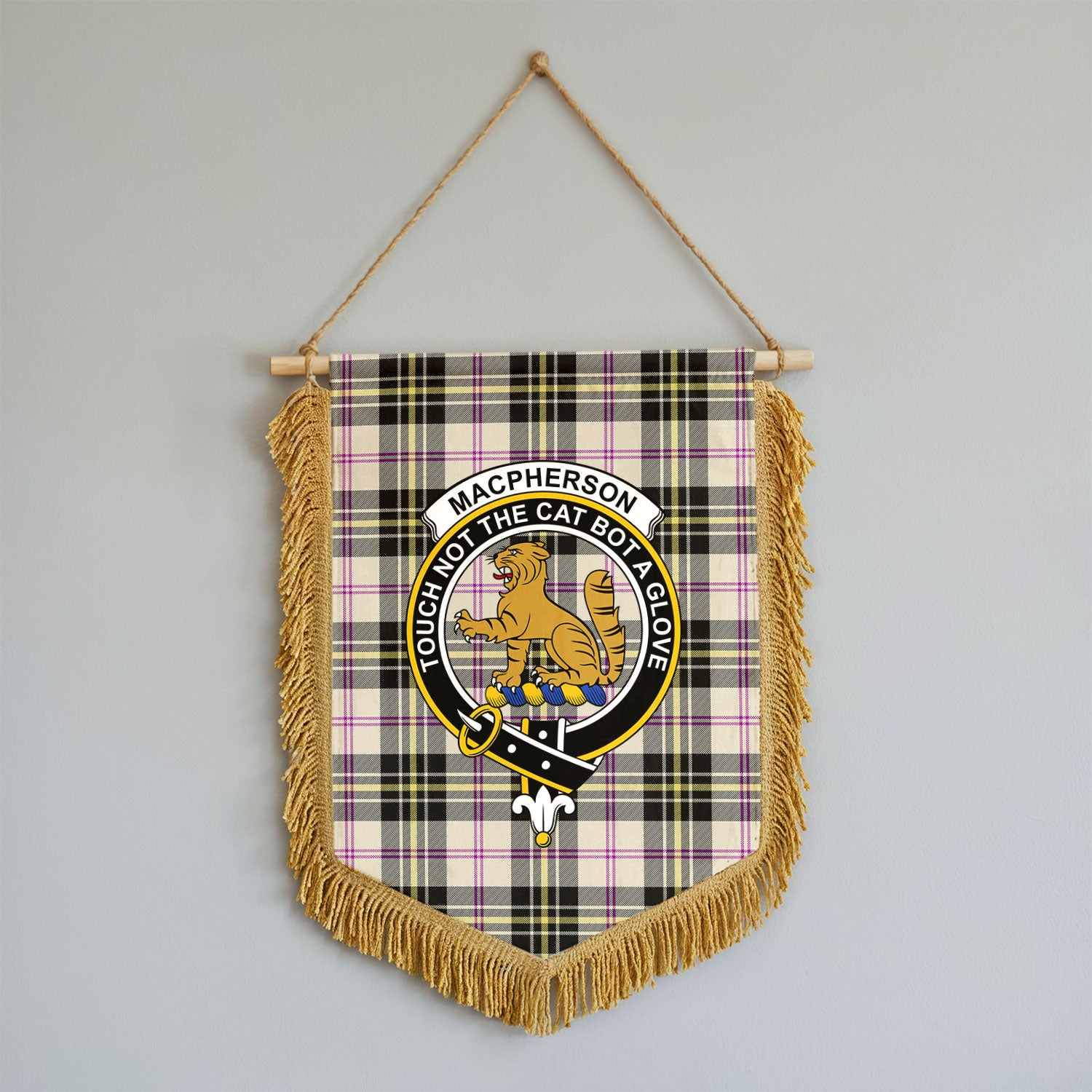 MacPherson Dress Ancient Tartan Crest Wall Hanging Banner - Wood Pole