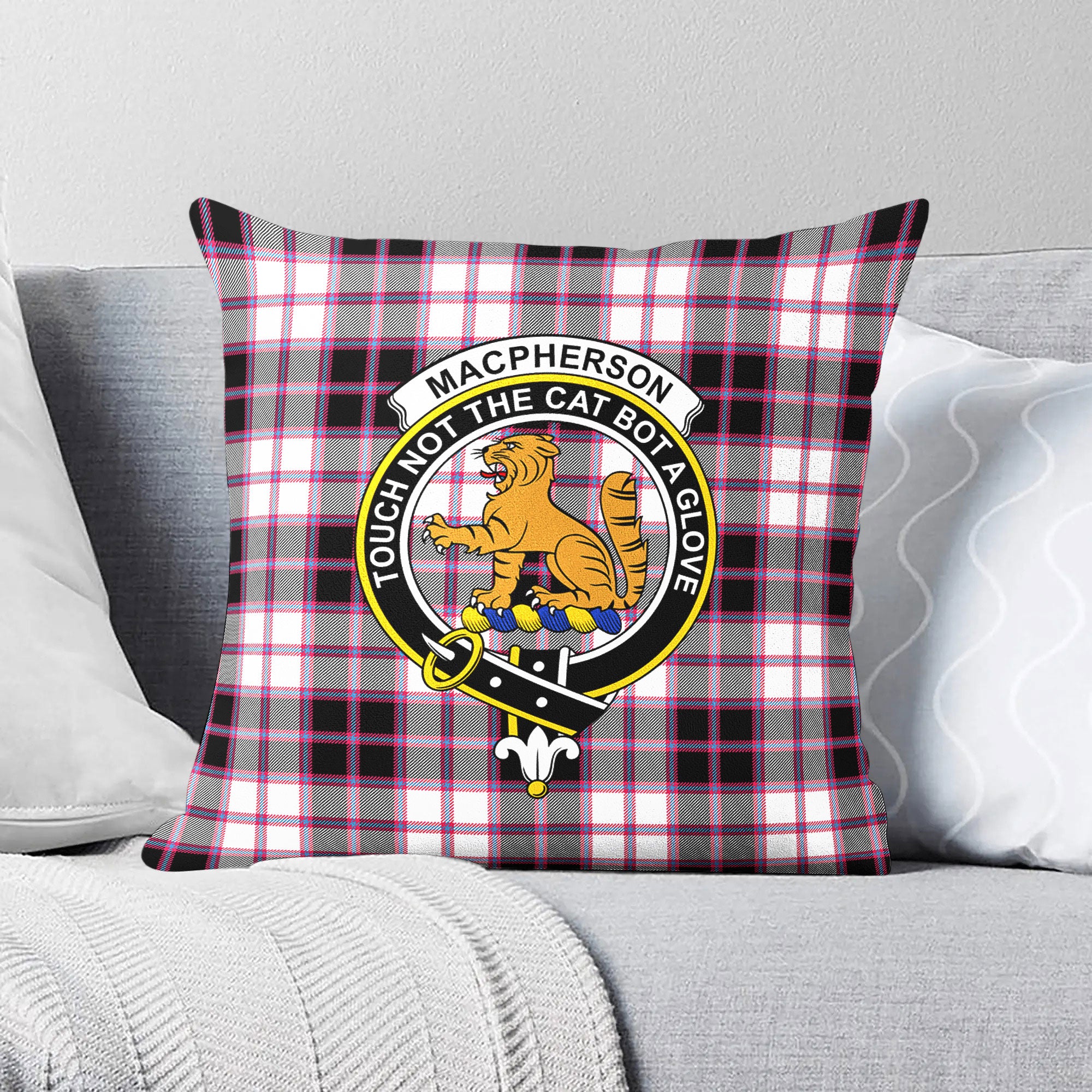 MacPherson Hunting Modern Tartan Crest Pillow Cover