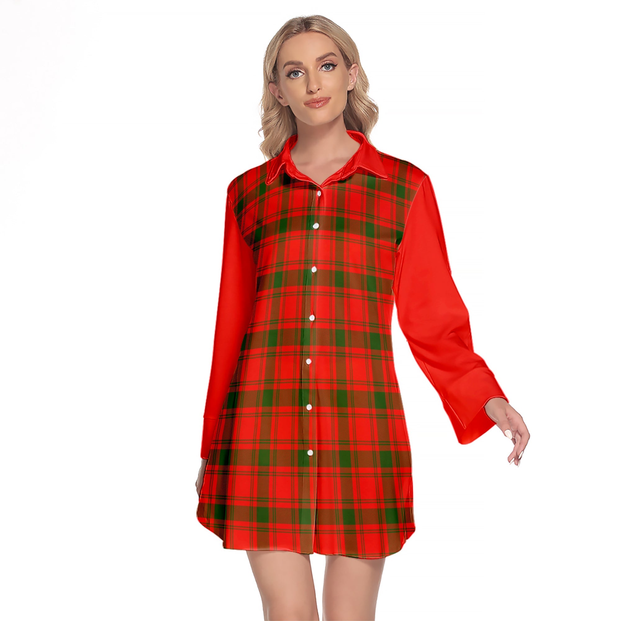 MacQuarrie Modern Tartan Women's Lapel Shirt Dress With Long Sleeve