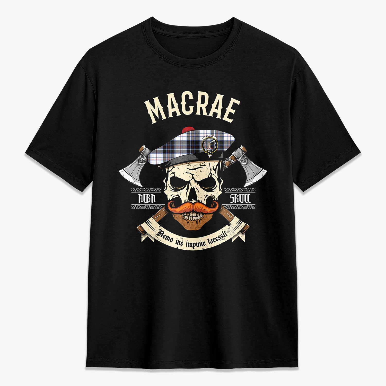 MacRae Dress Modern Tartan Crest 2D T-shirt - Alba Skull Style