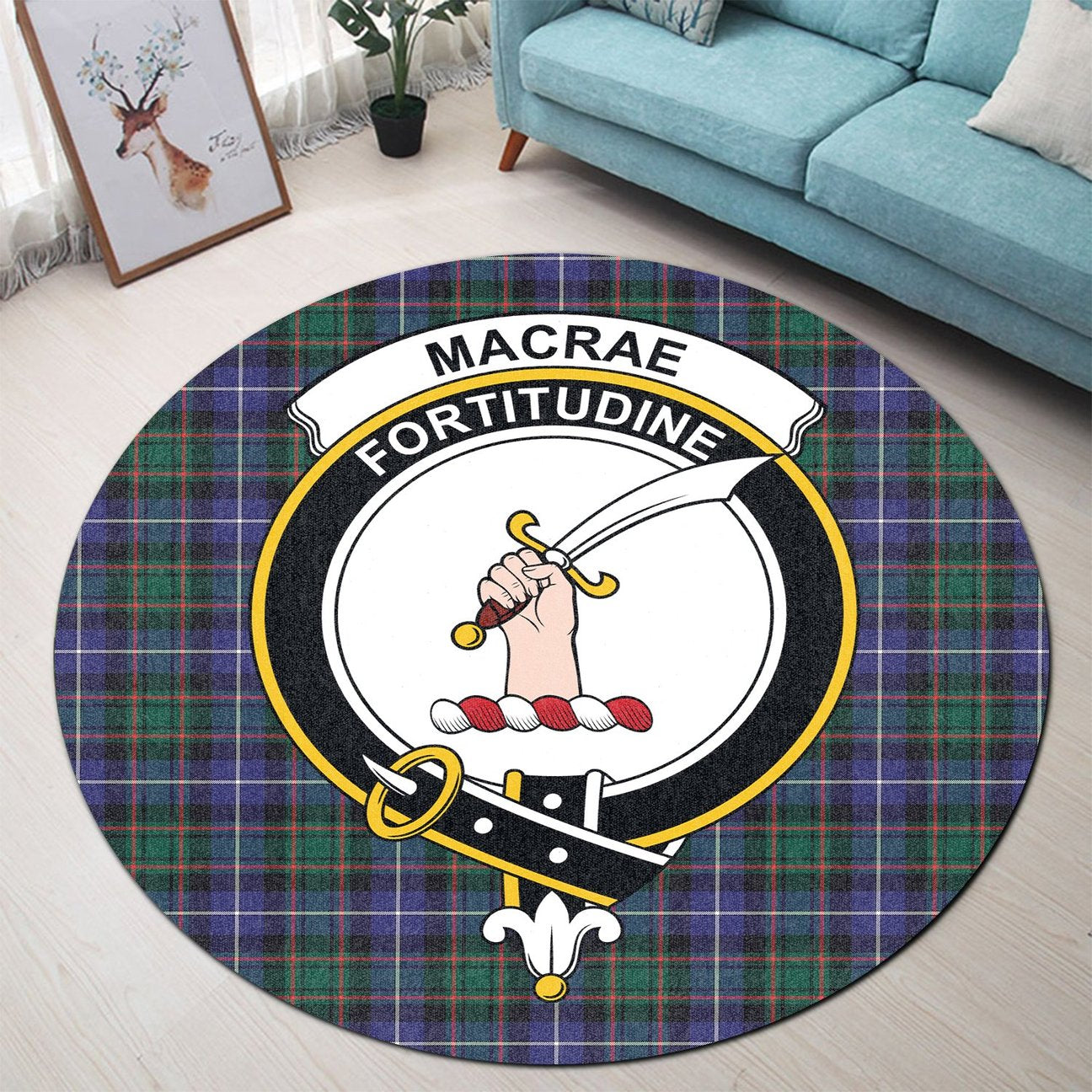 MacRae Hunting Modern Tartan Crest Round Rug