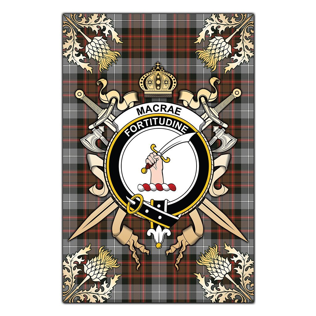 MacRae Hunting Weathered Tartan Crest Black Garden Flag - Gold Thistle Style