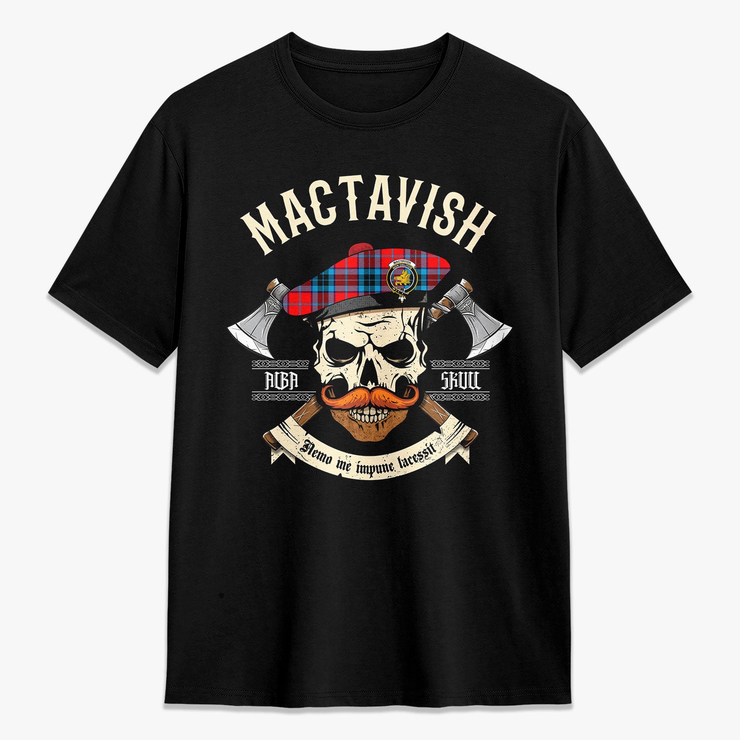 MacTavish Modern Tartan Crest 2D T-shirt - Alba Skull Style