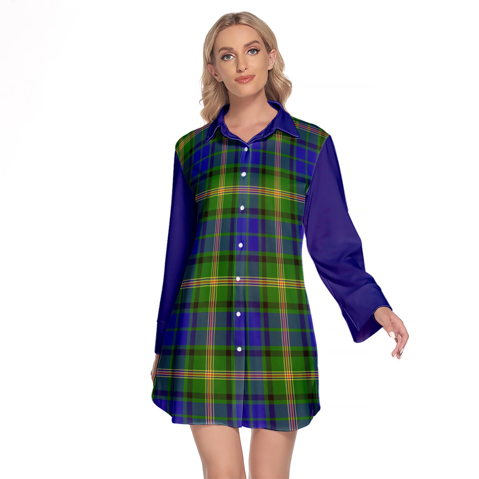 Maitland Tartan Women's Lapel Shirt Dress With Long Sleeve