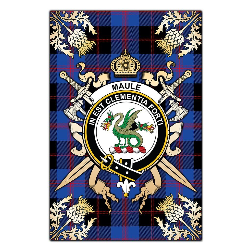 Maule Tartan Crest Black Garden Flag - Gold Thistle Style
