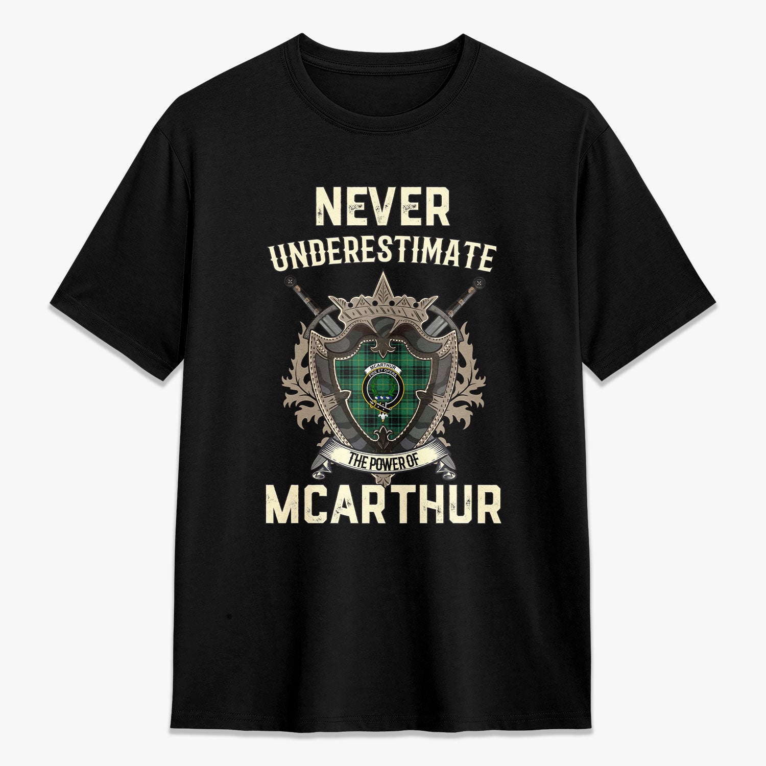 McArthur Ancient Tartan Crest 2D T-shirt - Never Underestimate Style