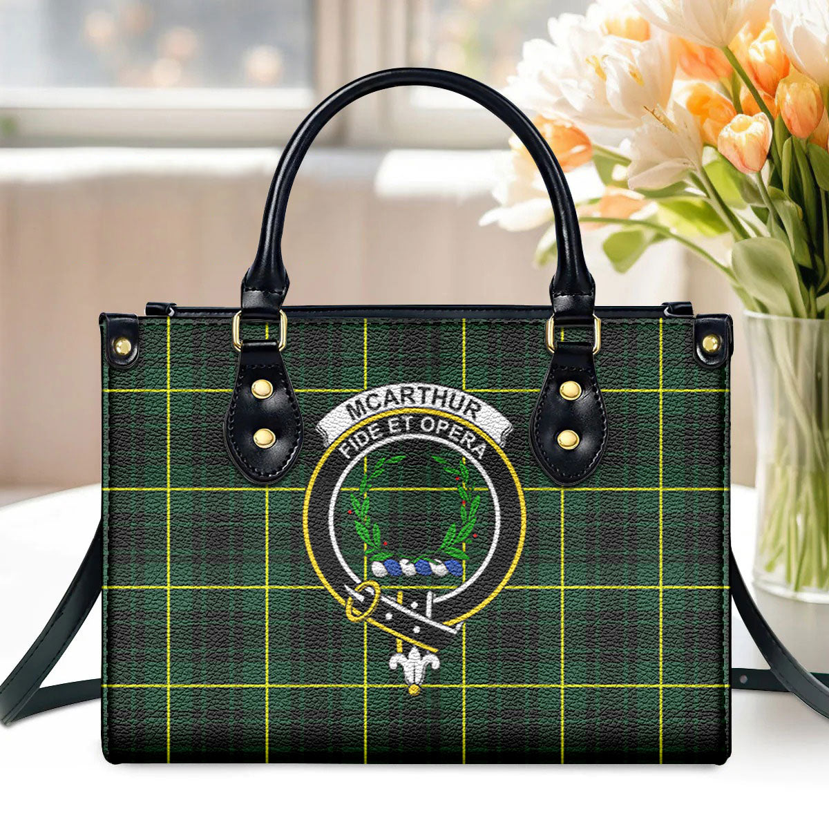McArthur Modern Tartan Crest Leather Handbag