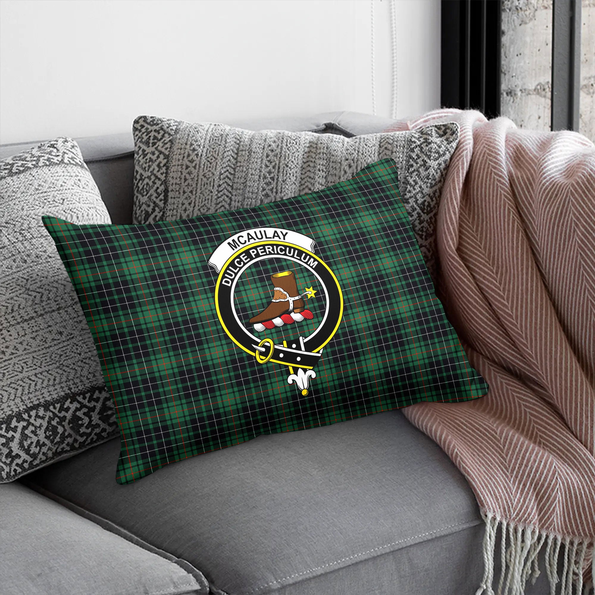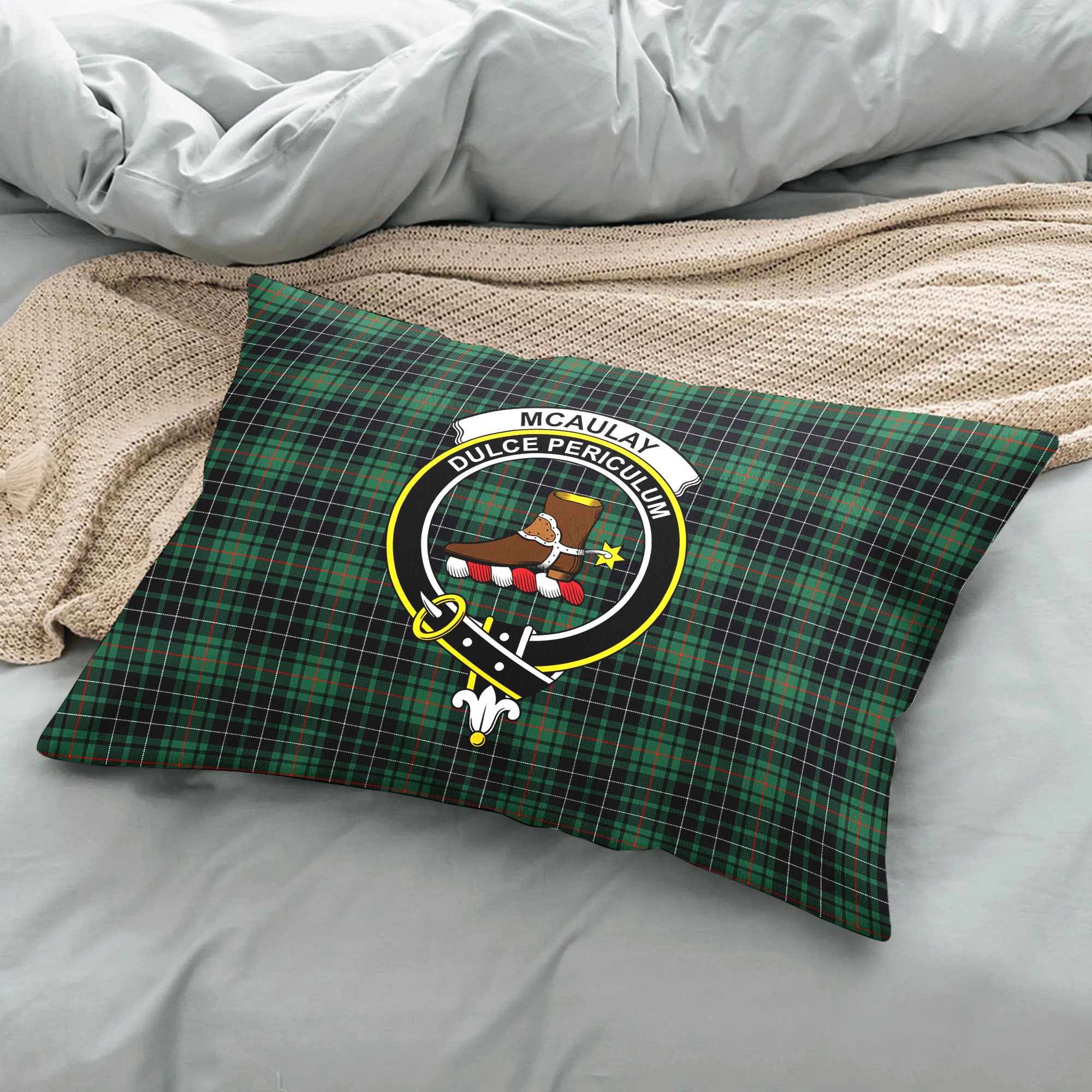 McAulay Hunting Ancient Tartan Crest Pillow Cover