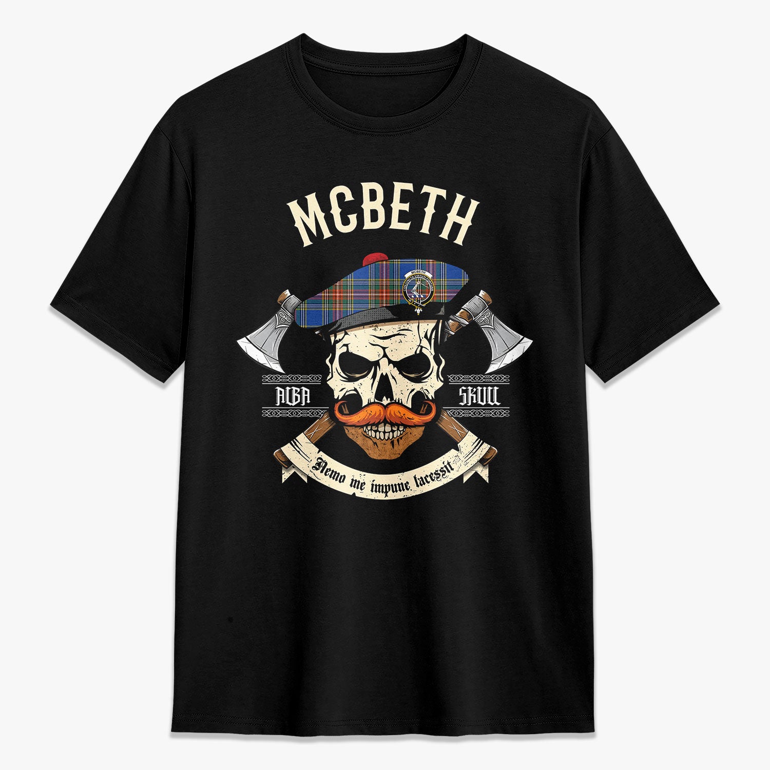 McBeth Ancient Tartan Crest 2D T-shirt - Alba Skull Style,