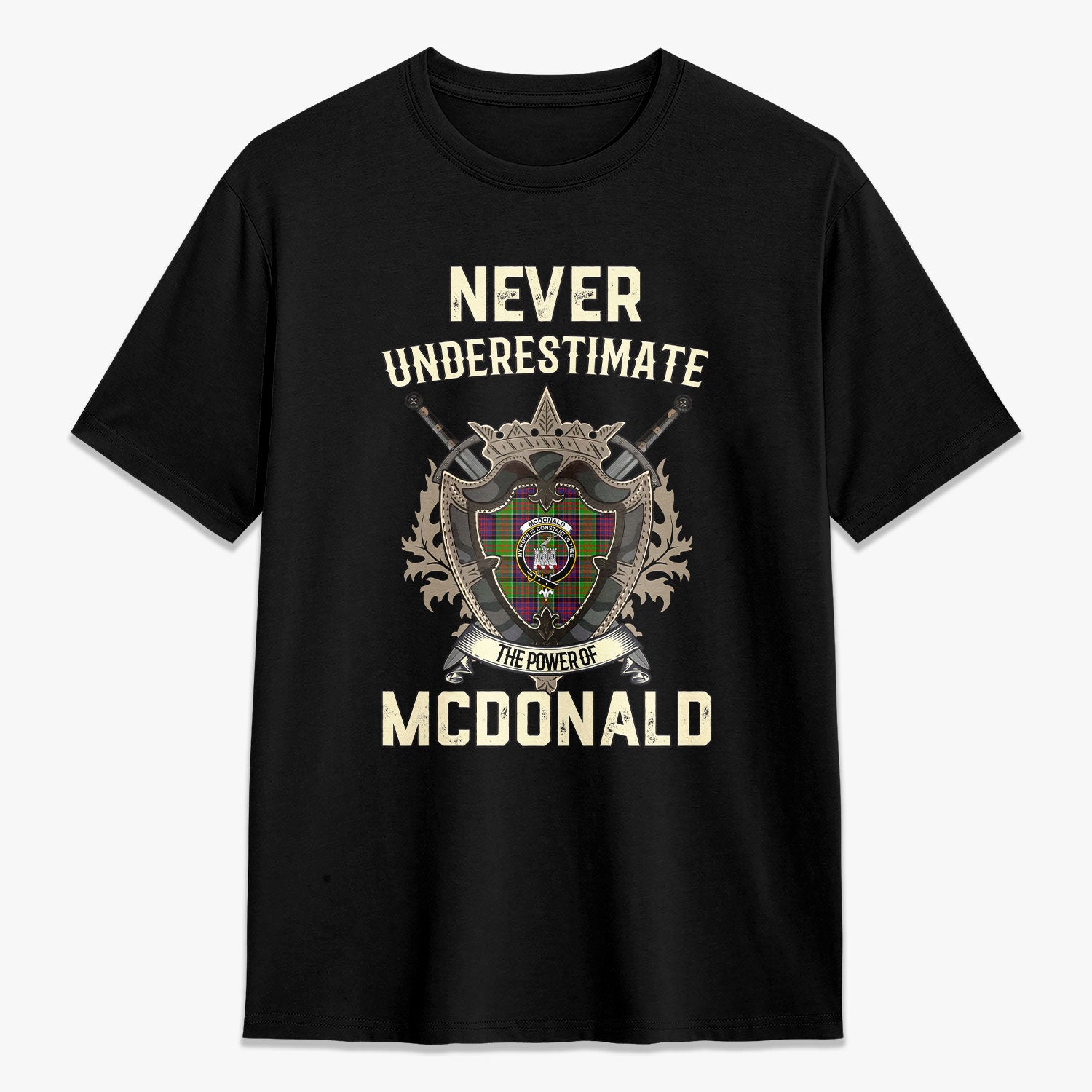 McDonald (Clan Ranald) Tartan Crest 2D T-shirt - Never Underestimate Style
