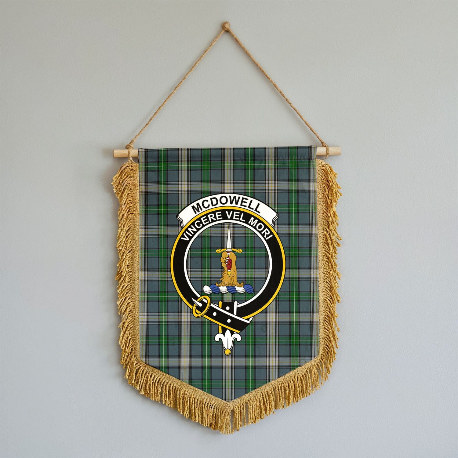 McDowell (MacDowell) Tartan Crest Wall Hanging Banner - Wood Pole