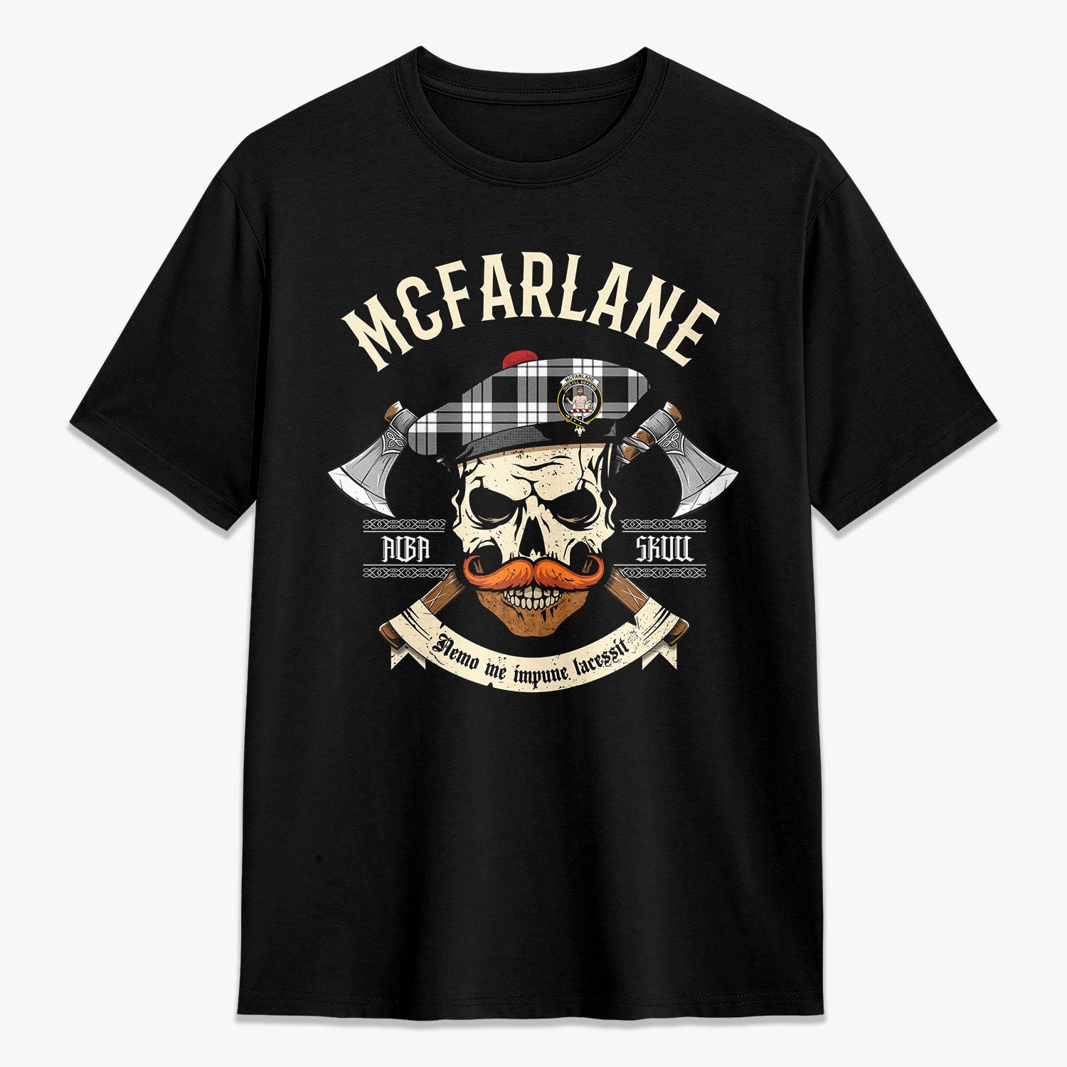 McFarlane Black - White Tartan Crest 2D T-shirt - Alba Skull Style,