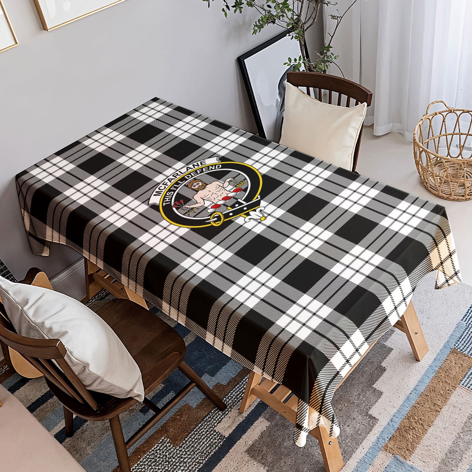 McFarlane Black - White Tartan Crest Tablecloth