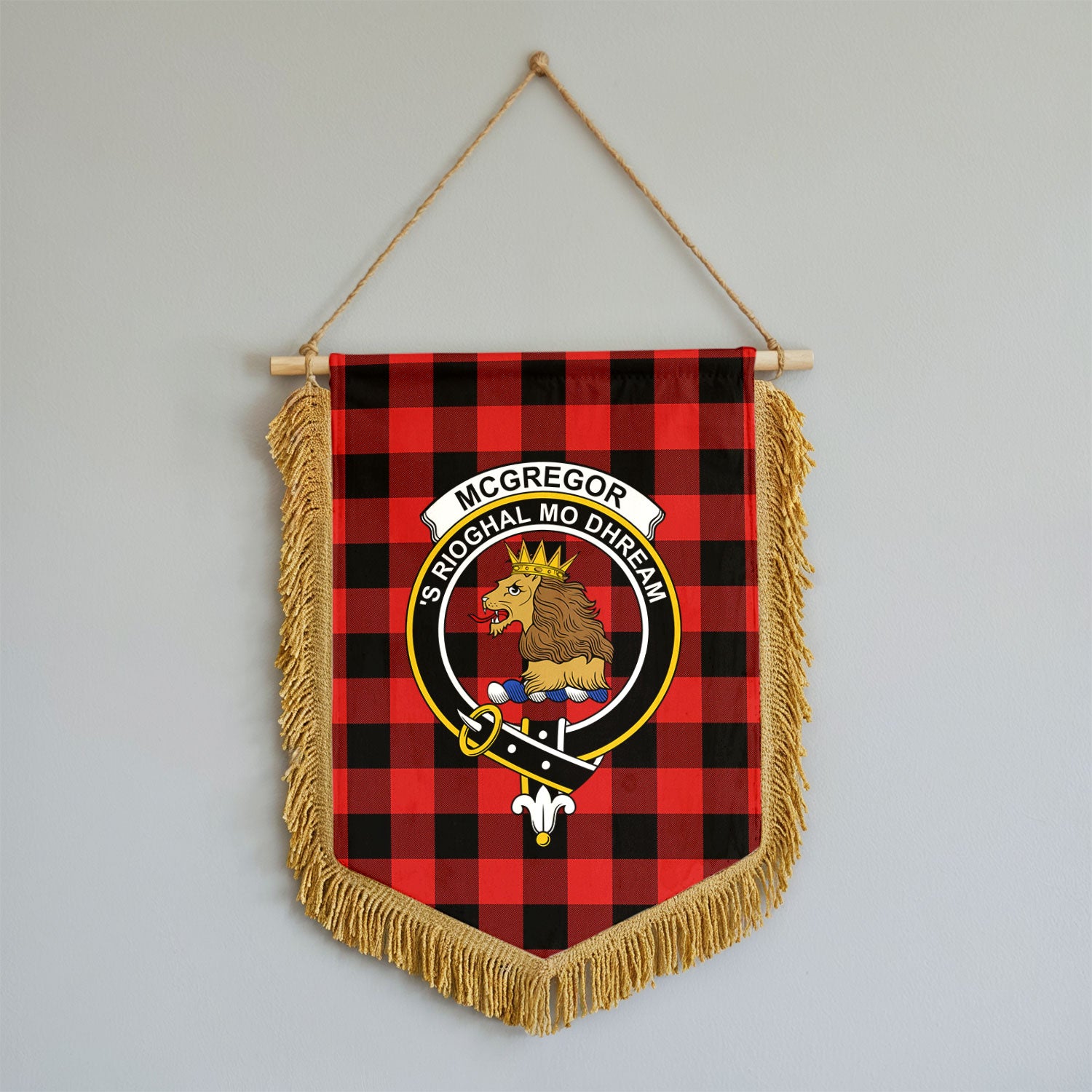 McGregor Rob Roy Modern Tartan Crest Wall Hanging Banner - Wood Pole