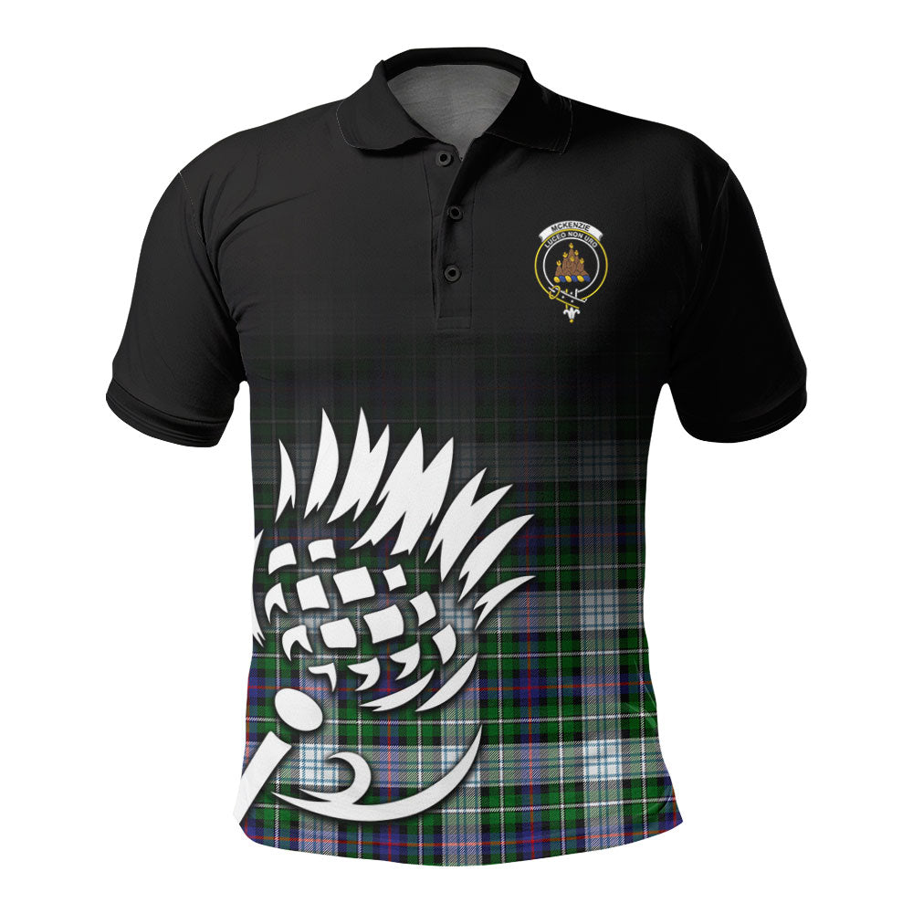 McKenzie Dress Modern Tartan Crest Polo Shirt - Thistle Black Style