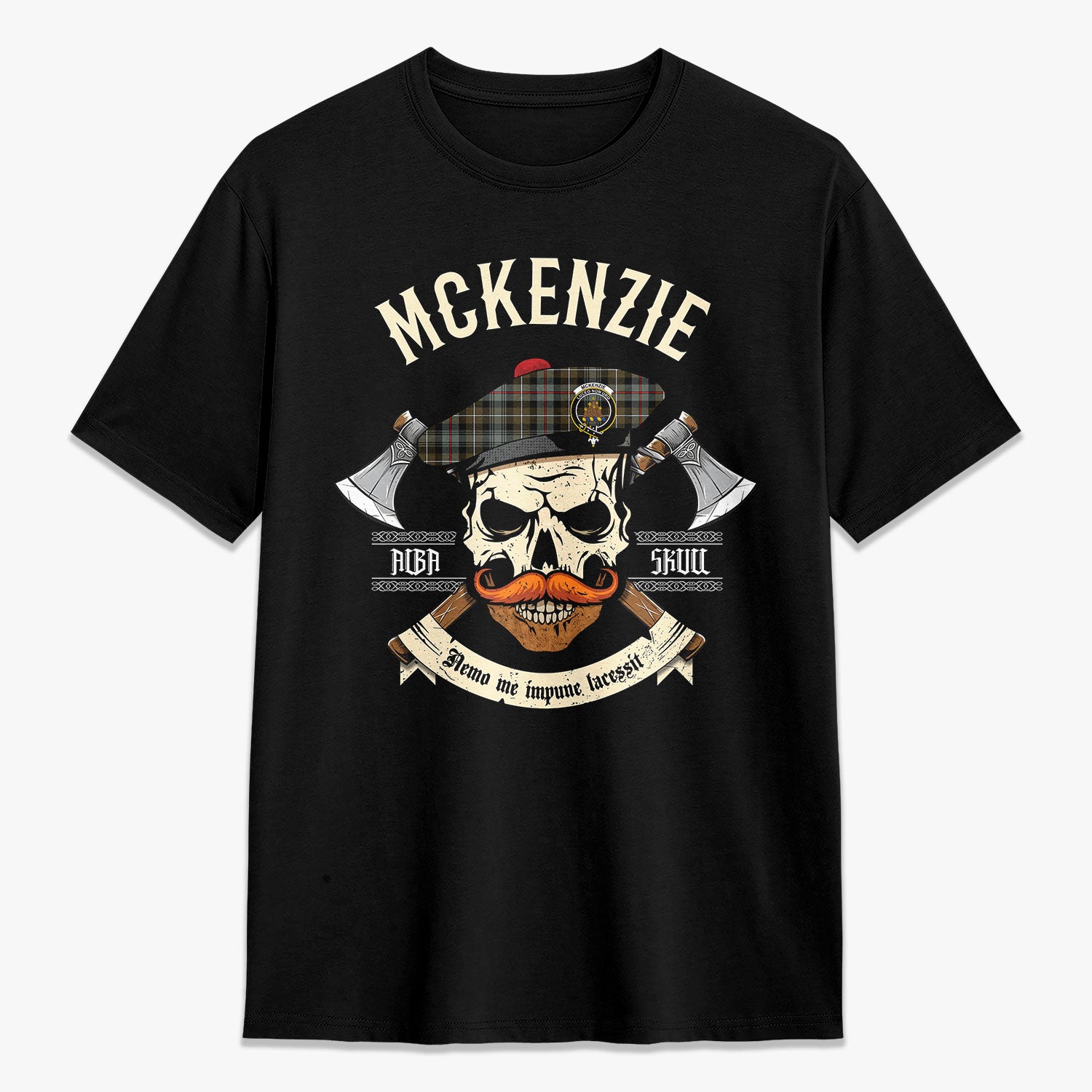 McKenzie Weathered Tartan Crest 2D T-shirt - Alba Skull Style