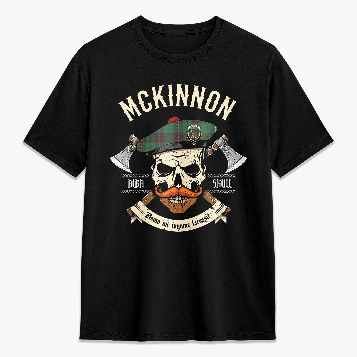McKinnon Hunting Ancient Tartan Crest 2D T-shirt - Alba Skull Style,