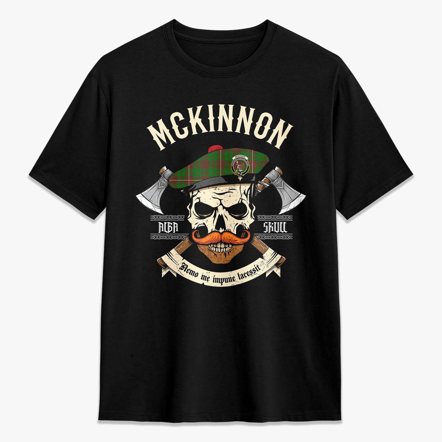 McKinnon Hunting Modern Tartan Crest 2D T-shirt - Alba Skull Style,