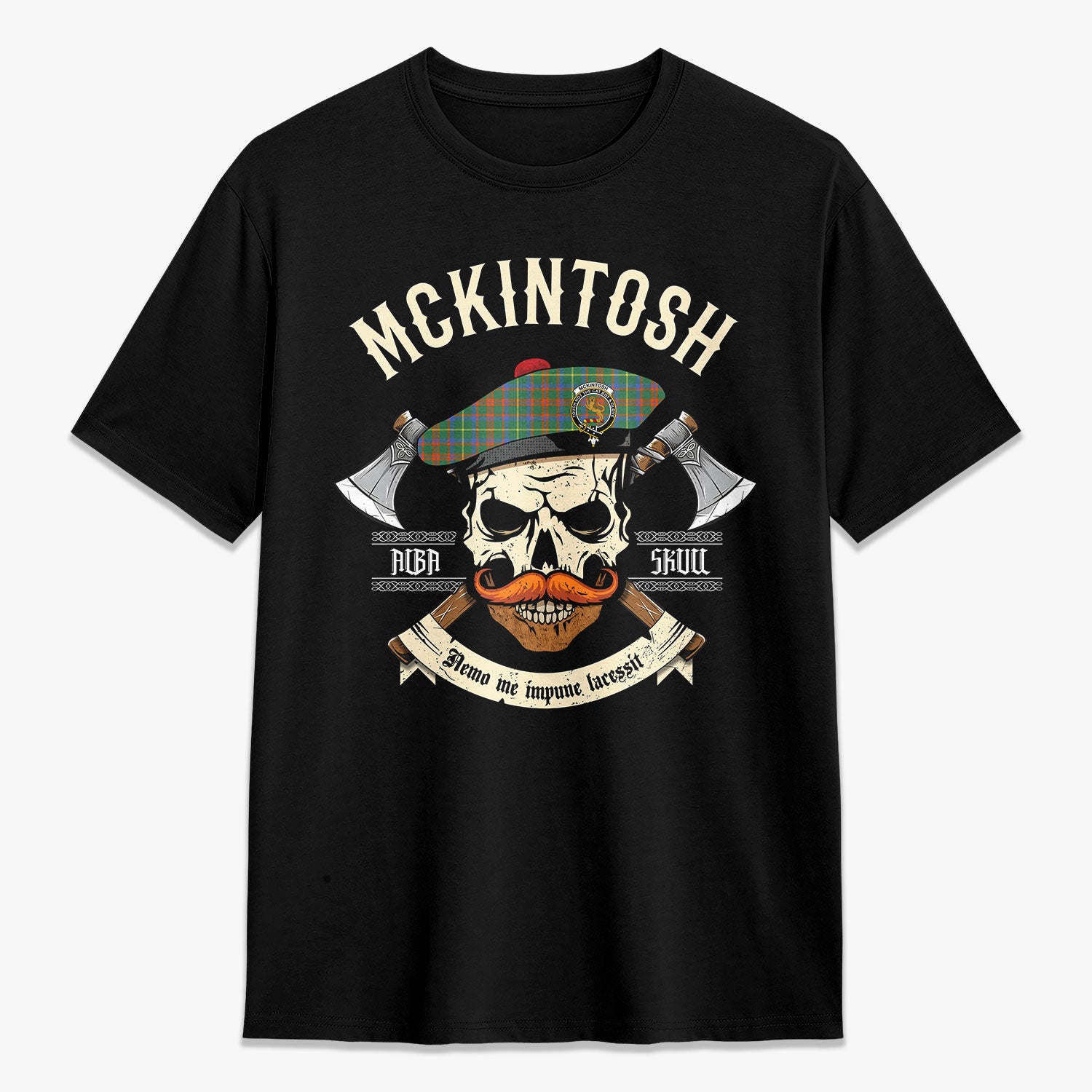 McKintosh Hunting Ancient Tartan Crest 2D T-shirt - Alba Skull Style,