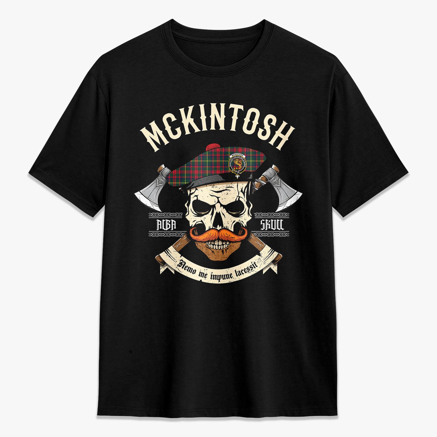 McKintosh Hunting Modern Tartan Crest 2D T-shirt - Alba Skull Style,