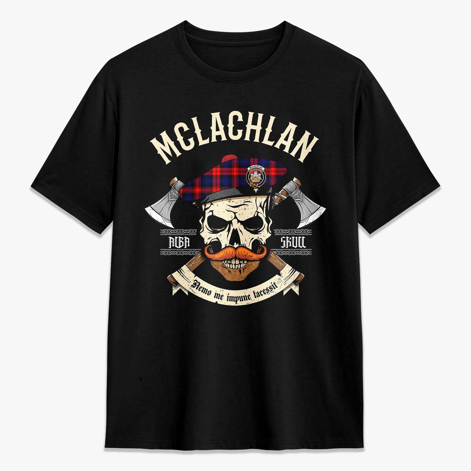 McLachlan Modern Tartan Crest 2D T-shirt - Alba Skull Style,