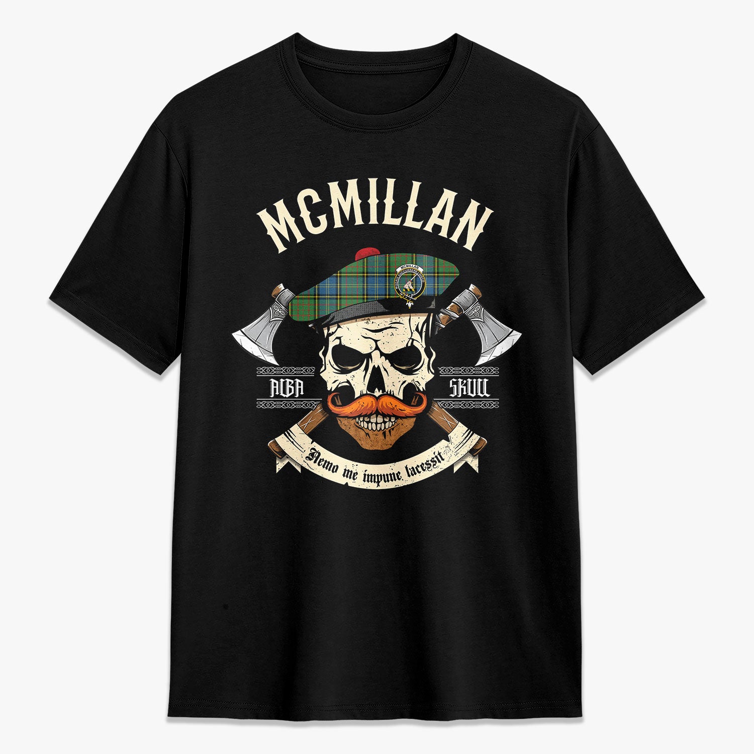 McMillan Hunting Ancient Tartan Crest 2D T-shirt - Alba Skull Style