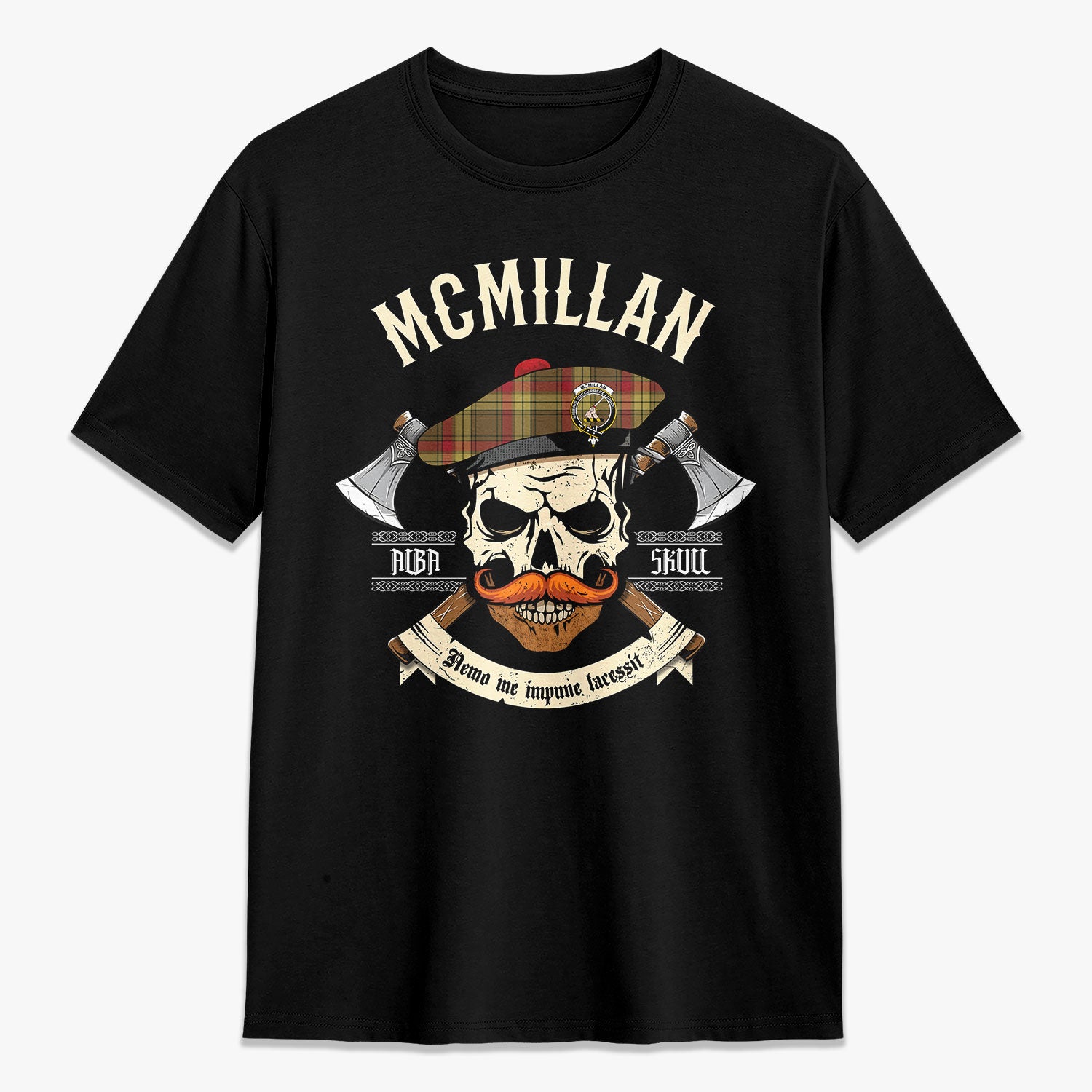 McMillan Old Weathered Tartan Crest 2D T-shirt - Alba Skull Style,