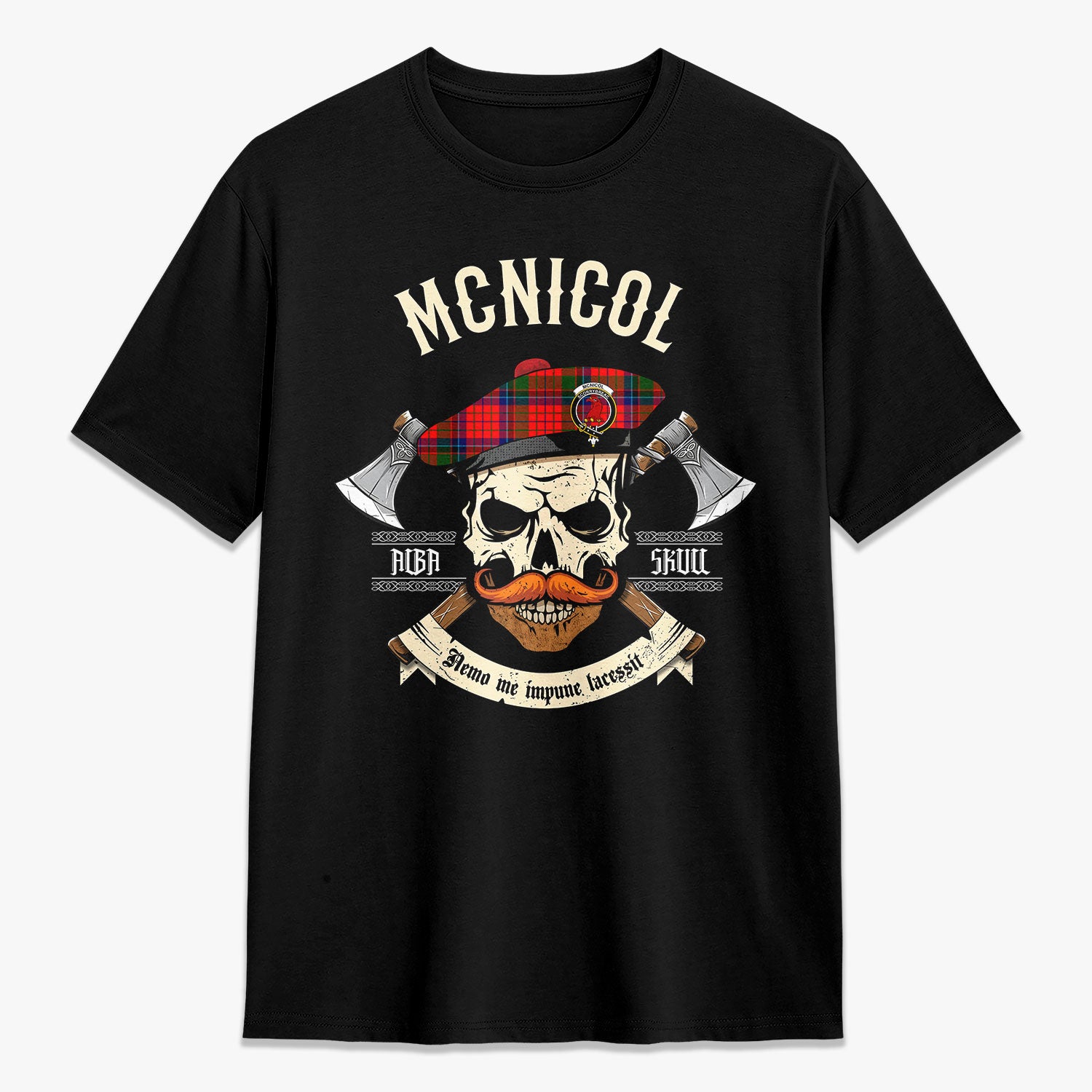 McNicol (of Scorrybreac) Tartan Crest 2D T-shirt - Alba Skull Style,