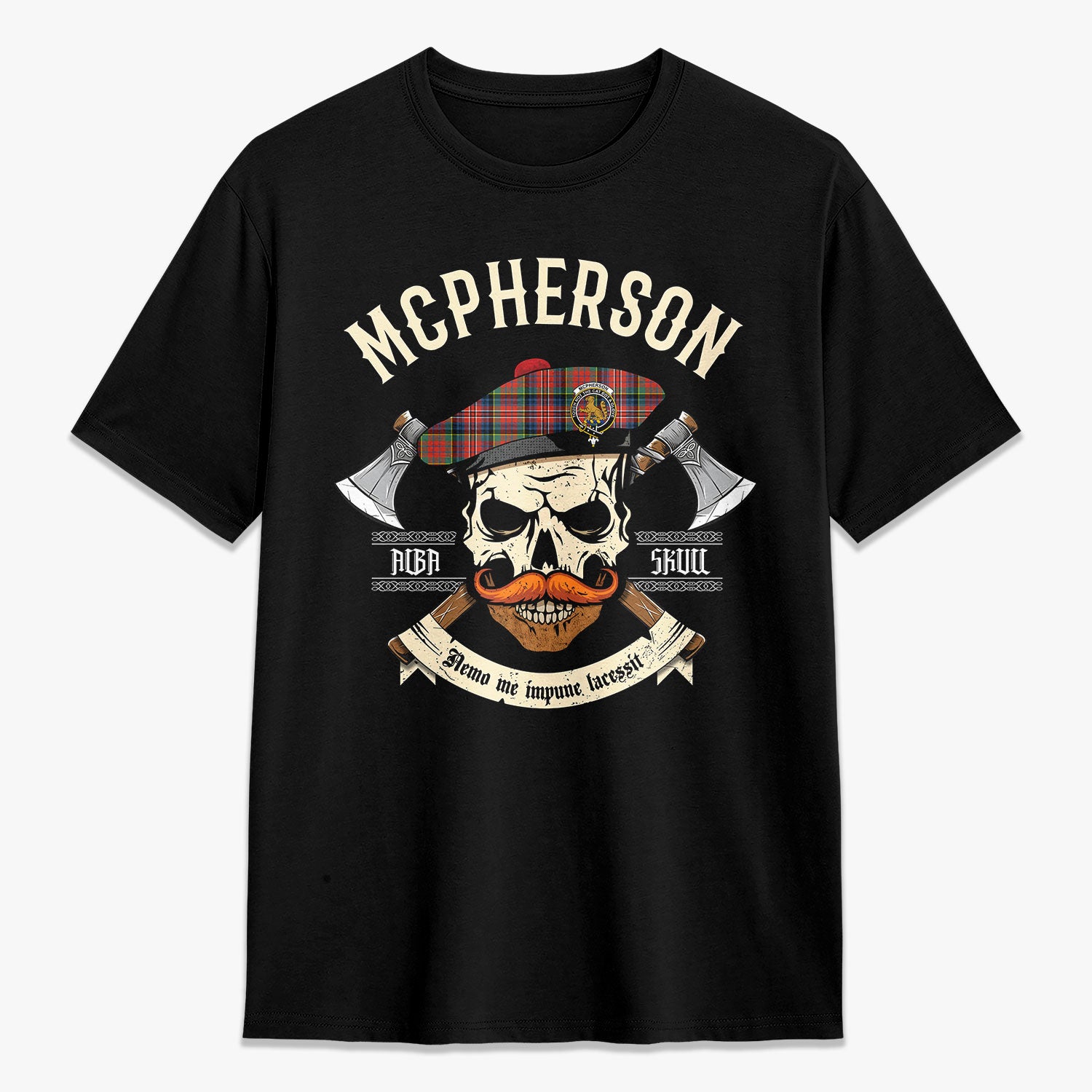 McPherson Ancient Tartan Crest 2D T-shirt - Alba Skull Style,