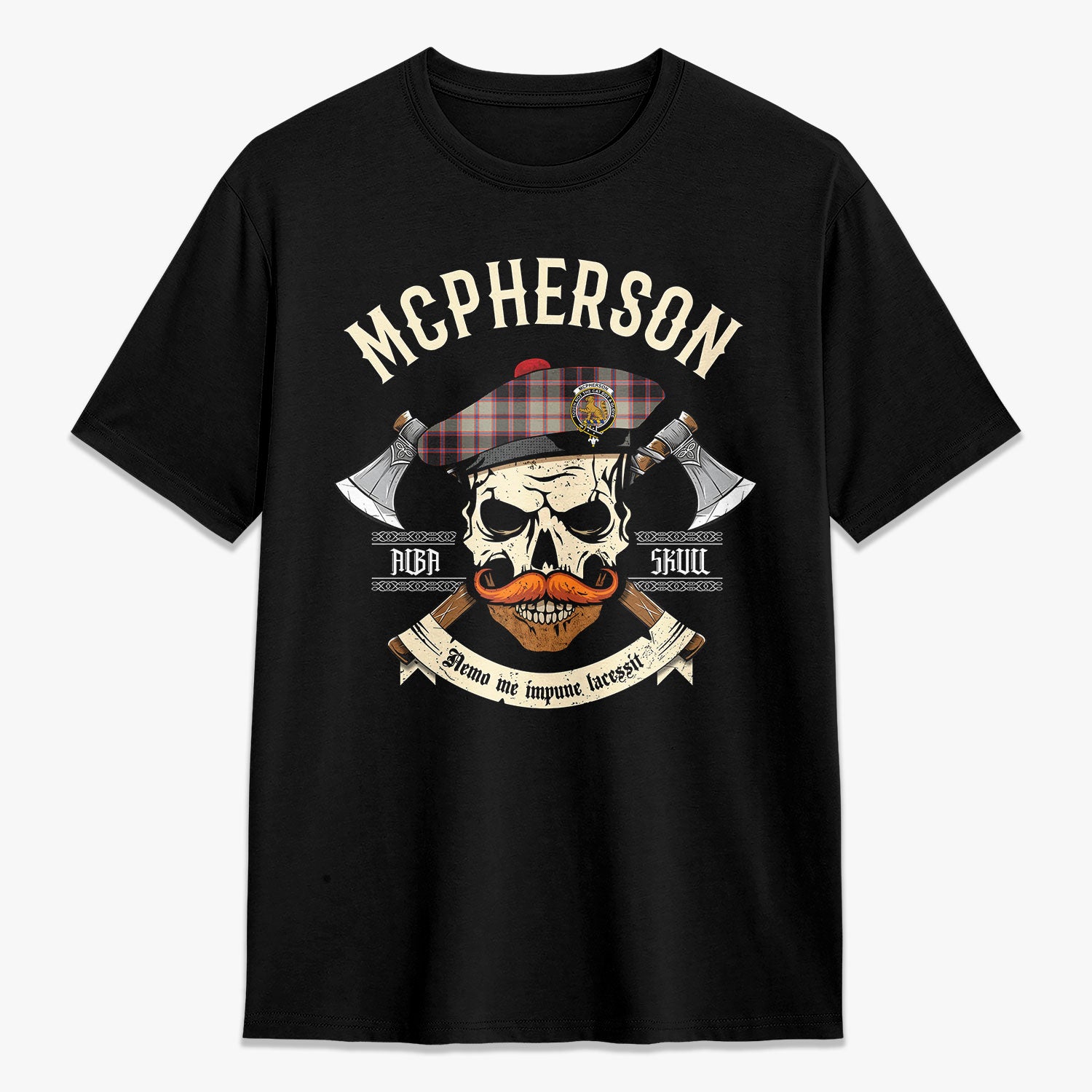McPherson Hunting Ancient Tartan Crest 2D T-shirt - Alba Skull Style,