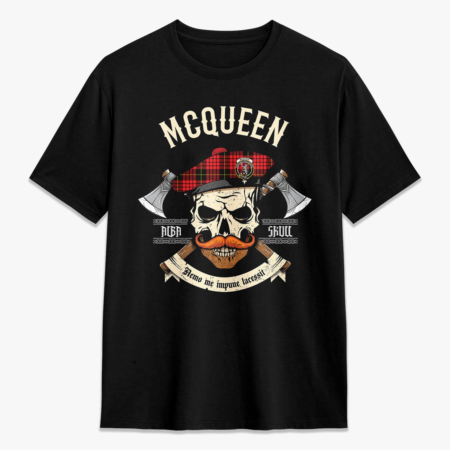 McQueen Modern Tartan Crest 2D T-shirt - Alba Skull Style,