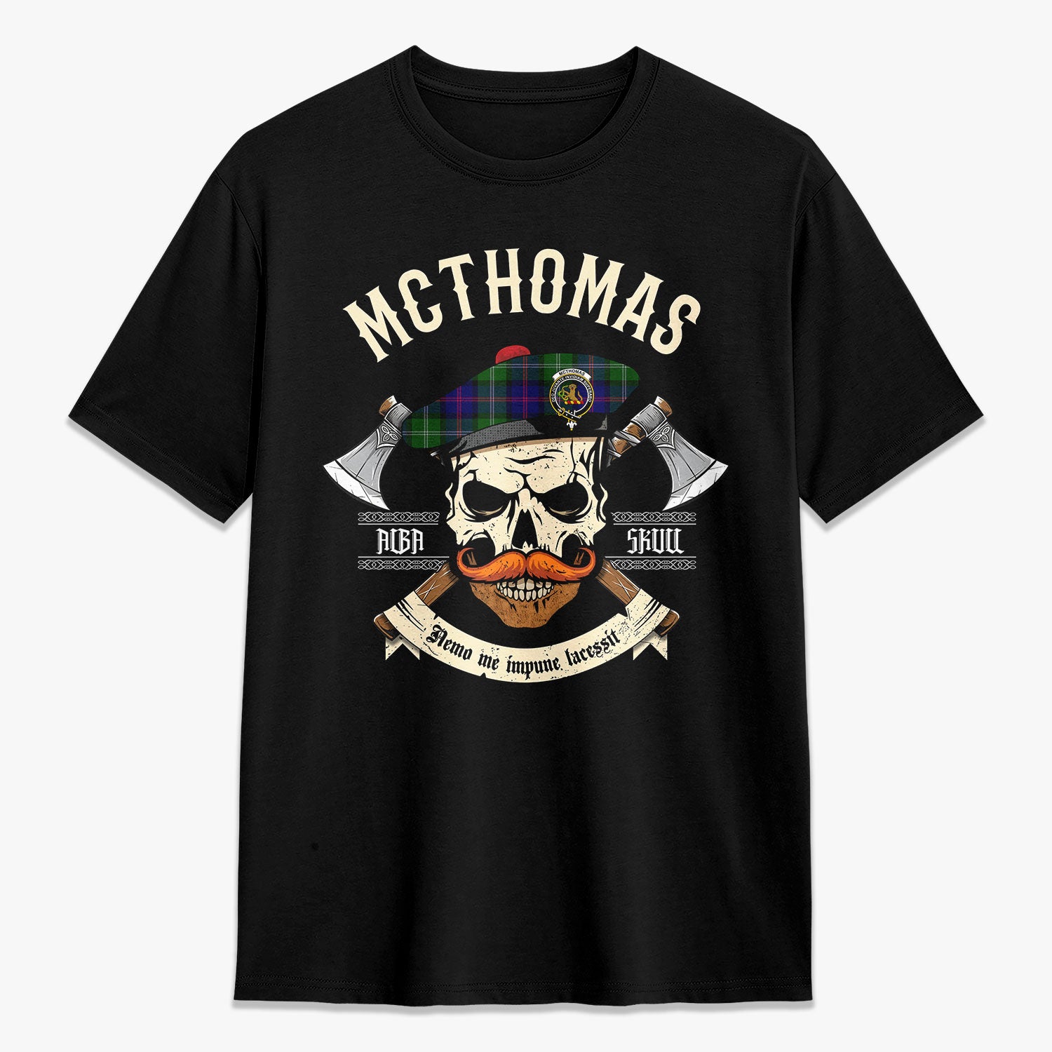 McThomas Modern Tartan Crest 2D T-shirt - Alba Skull Style,
