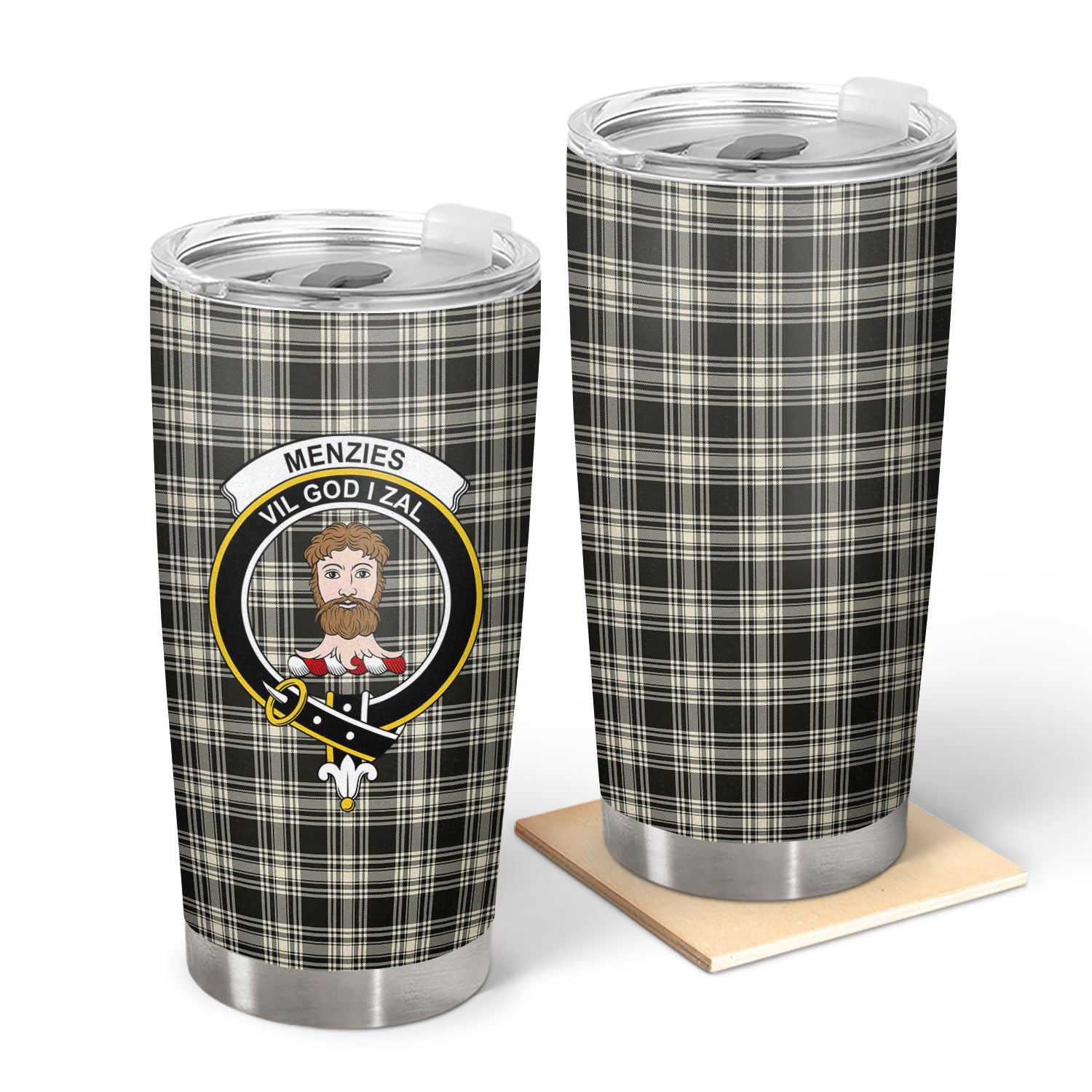 Menzies Black _ White Ancient Tartan Crest Tumbler