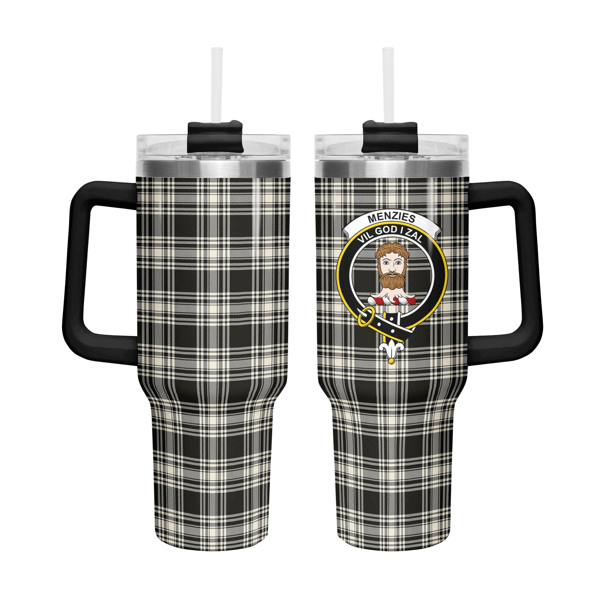 Stay refreshed all day with this 40 oz insulated tumbler featuring the Menzies Black - White Ancient Tartan. Whether you’re heading to work, running errands, or relaxing at home, this tumbler is built for daily use and long-lasting performance.