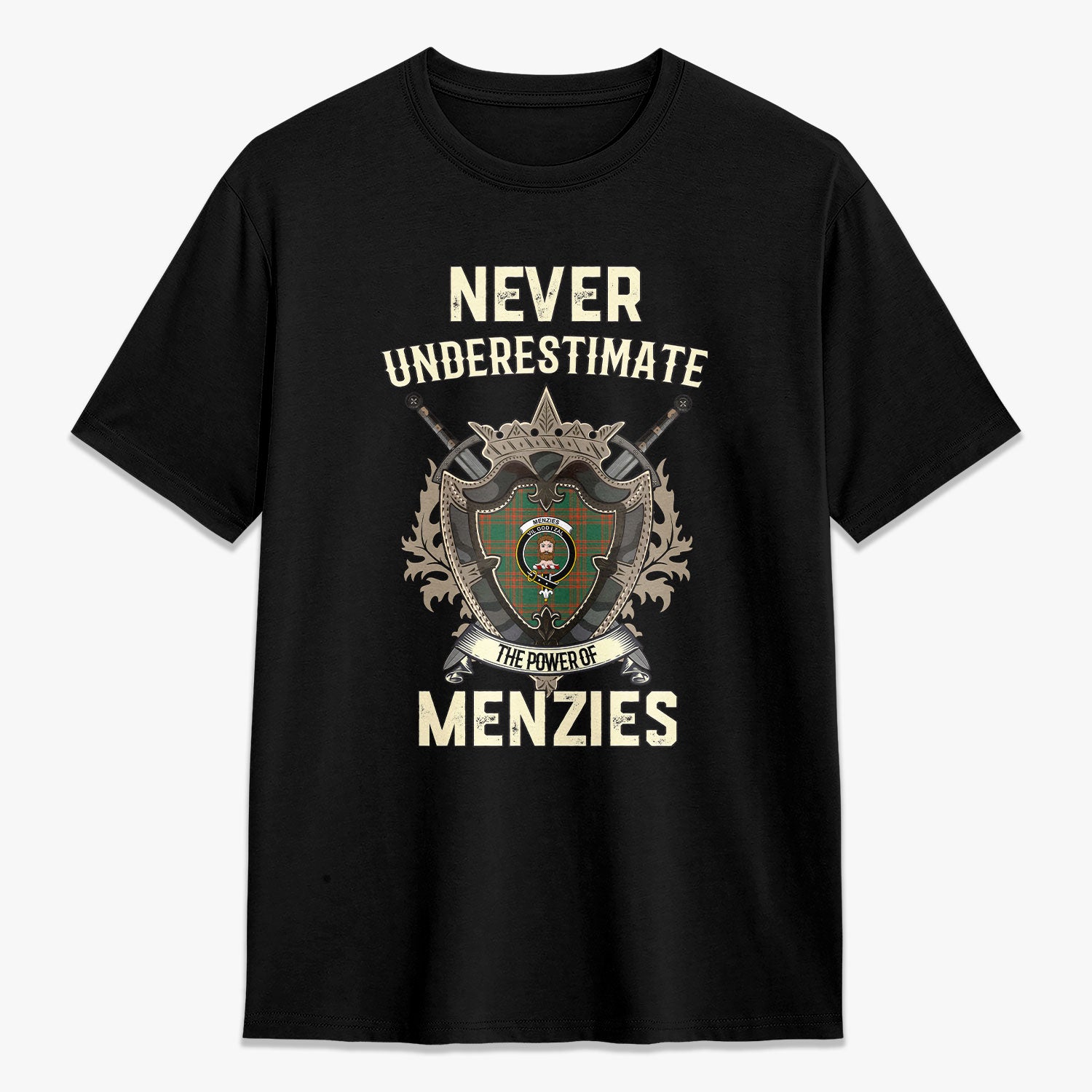 Menzies Green Ancient Tartan Crest 2D T-shirt - Never Underestimate Style