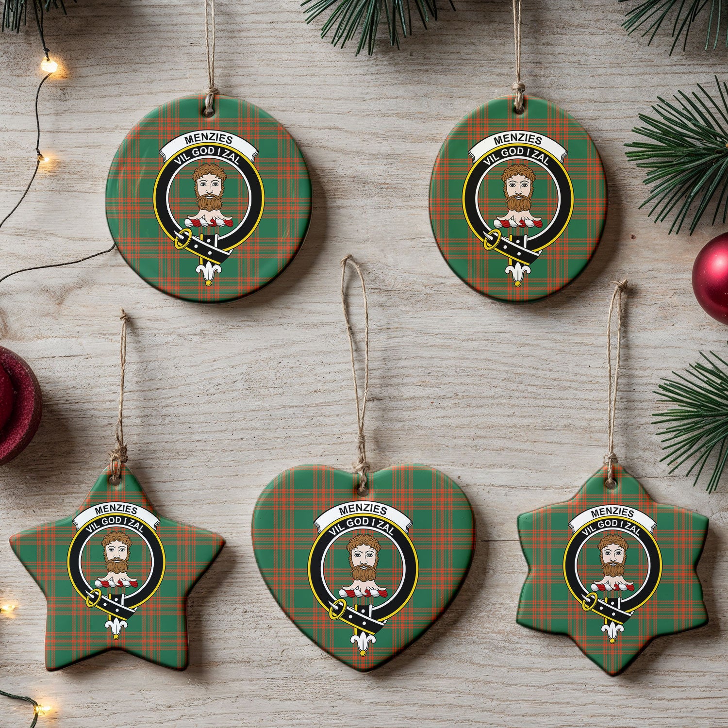 Menzies Green Ancient Tartan Crest Christmas Ceramic Ornament