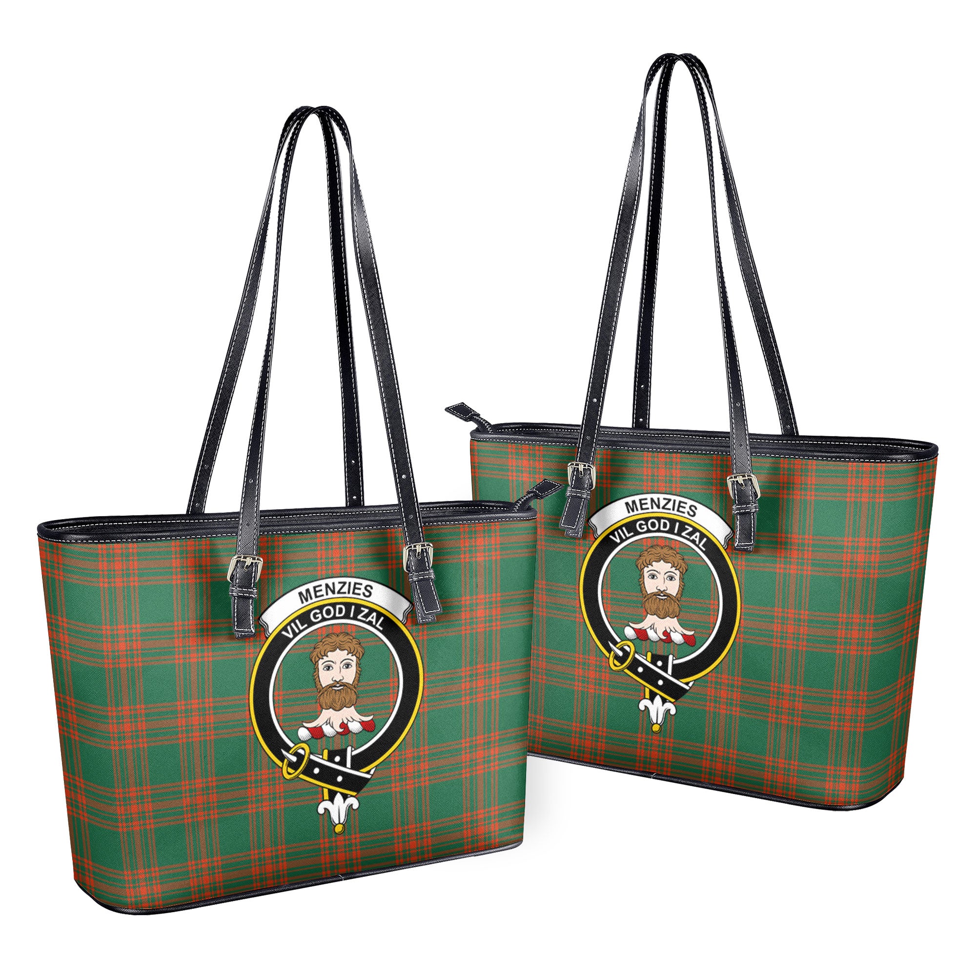 Menzies Green Ancient Tartan Crest Leather Tote Bag