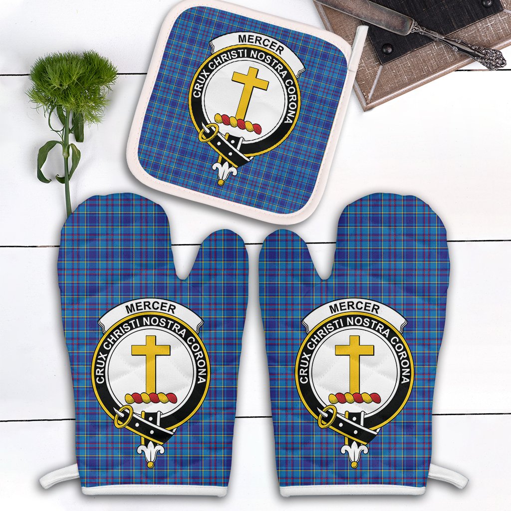 Mercer Modern Tartan Crest Oven Mitt And Pot Holder (2 Oven Mitts + 1 Pot Holder)
